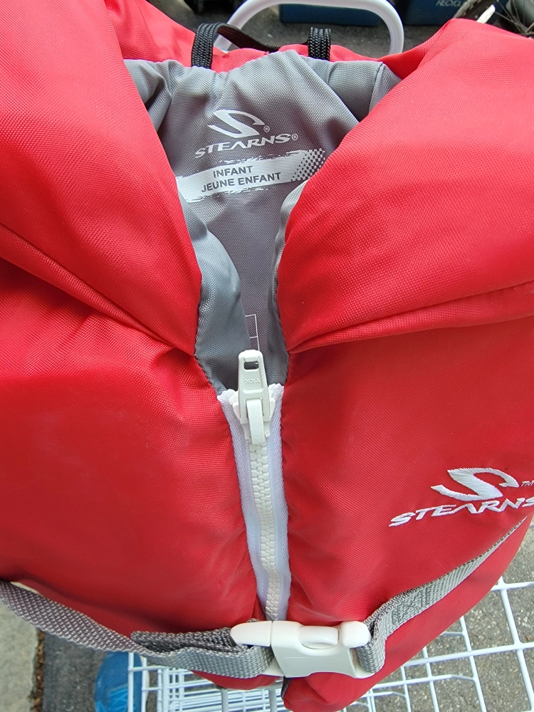 Selling a Stearns infant life jacket in excellent condition! It's red and grey, perfect for keeping your little one safe while enjoying water activities