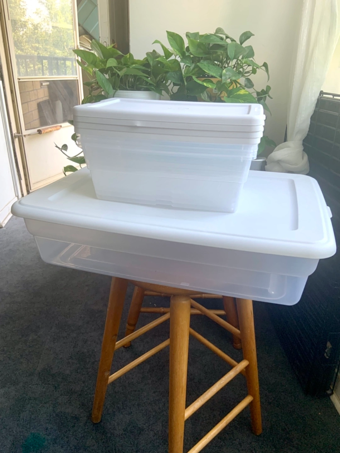 It's 23 1/4" L x 16 1/2" W x 5 7/8" H (59.7 cm x 41.9 cm x 14.9 cm) and holds 28 quarts. Great for keeping things organized!
