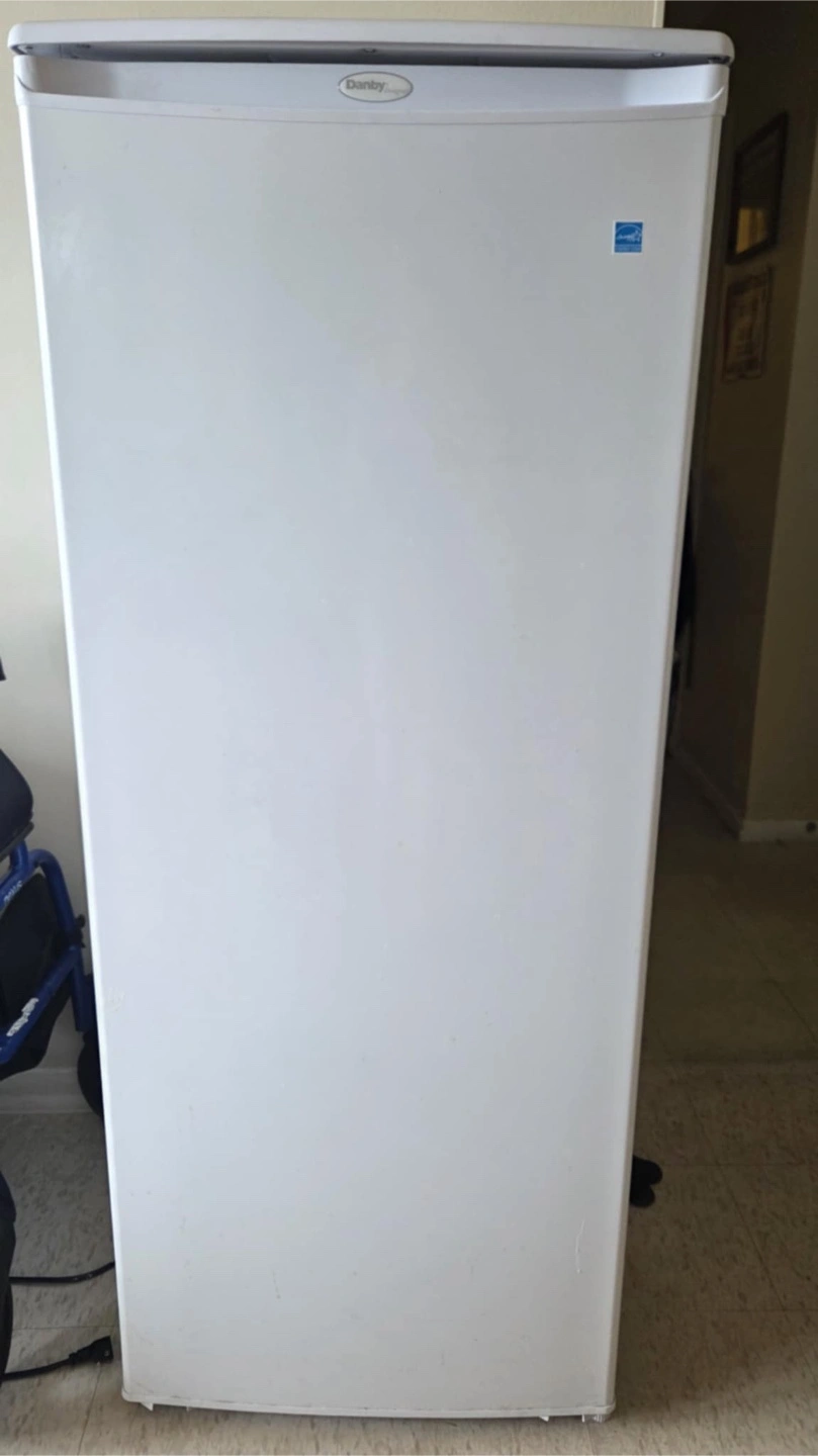 Selling a Danby upright freezer in white. It's in great condition and ready to keep your food frozen solid! Perfect for extra storage, especially if you like to stock up on groceries or meal prep.