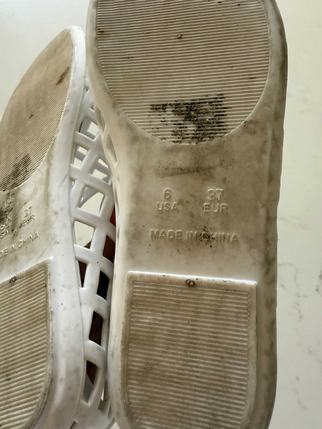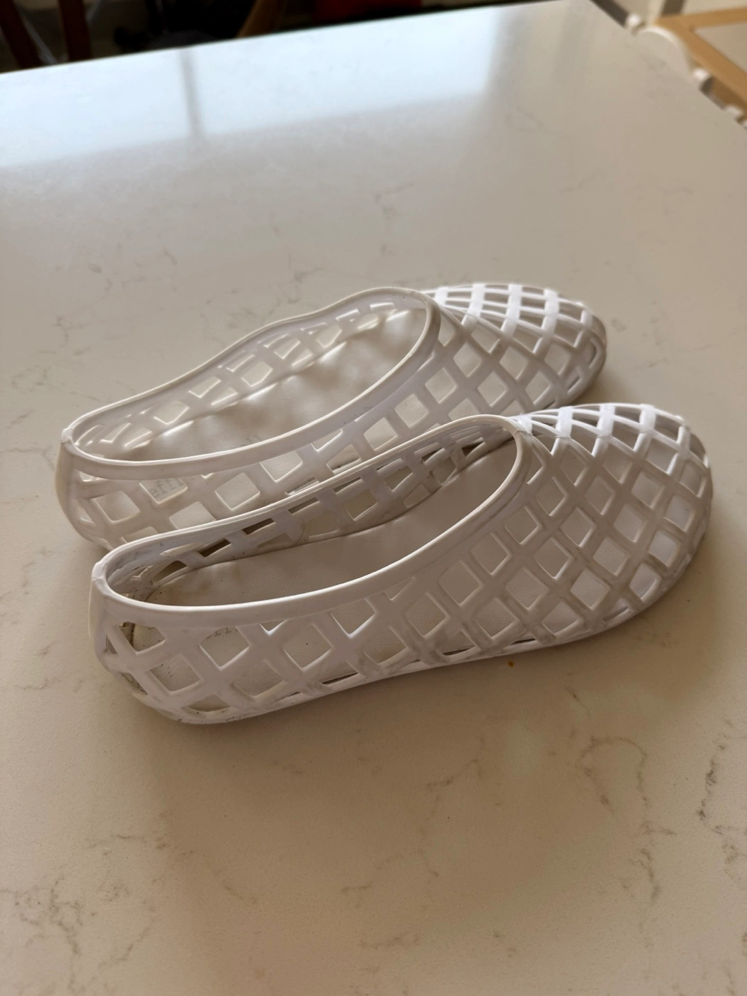 Selling a pair of Jeffrey Campbell jelly ballet flats in white! They are in great condition and perfect for summer. The size is 6 US.