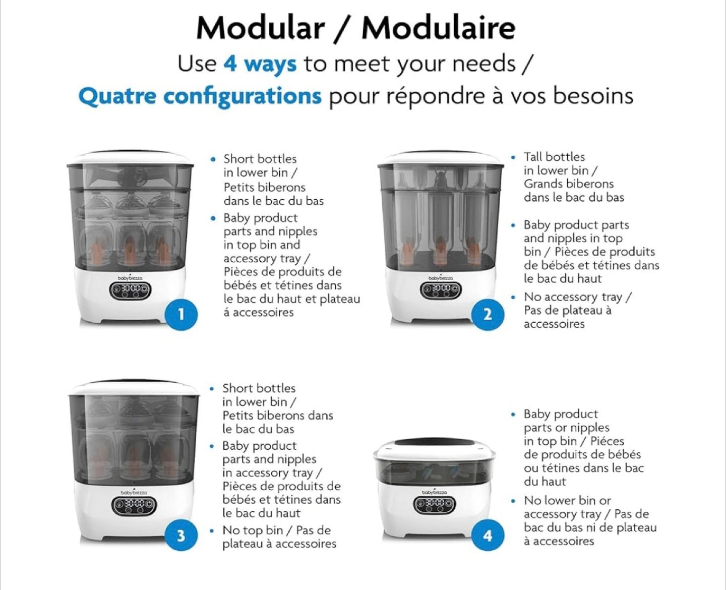 Easy to use, 4 in 1 functionality with Digital Countdown Timer: Use LCD control panel to choose from 4 functions (Sterilizer & Dryer, Sterilizer Only, Dryer Only or Storage System); Digital countdown timer lets you see how much time is left in the cycle