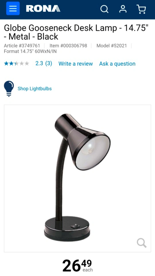 247Selling a black Globe gooseneck desk lamp. It's in good condition and perfect for a desk or bedside table. It uses a 60W bulb. Model #52021. Originally bought for $26.49 p/s: check my other listings. Buy 2, get 10% off. Buy 3, get 15% off. Buy 4+, get 20% off. 😉