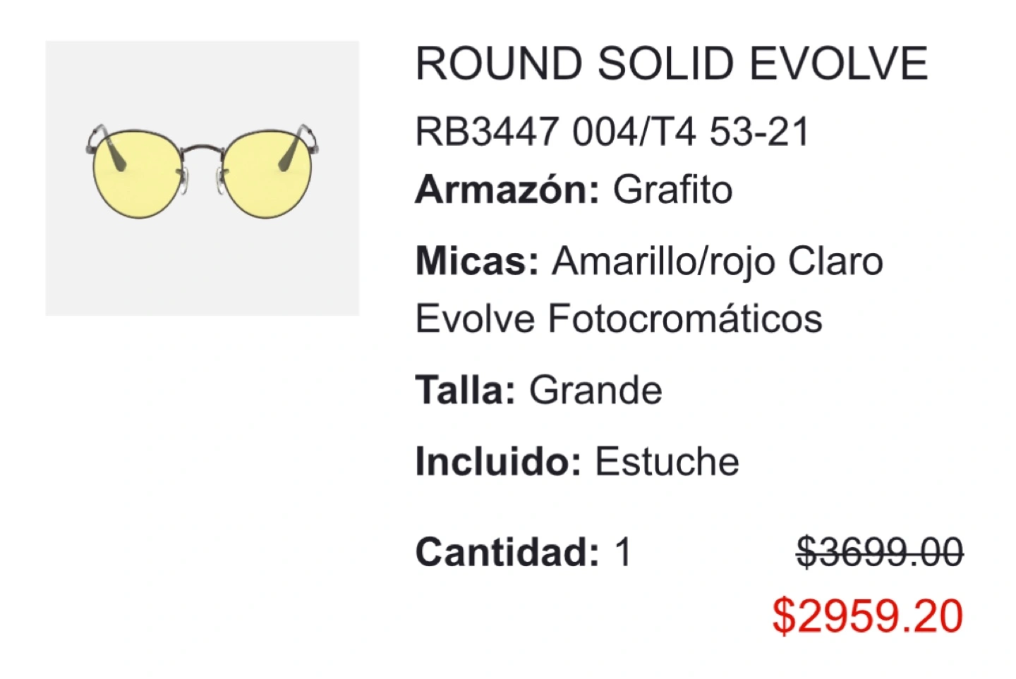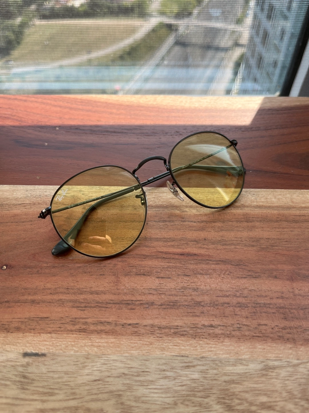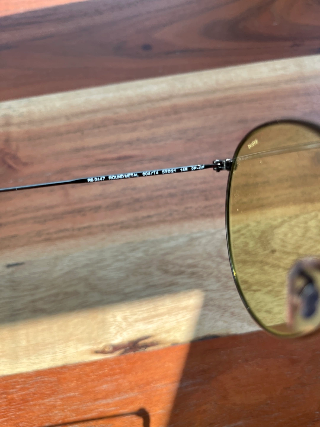 Selling a pair of Ray-Ban Round Metal Evolve RB3447 sunglasses. The frame is graphite, and the lenses are yellow