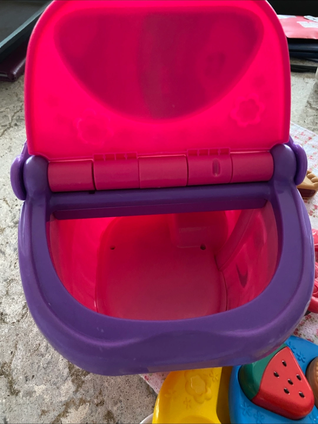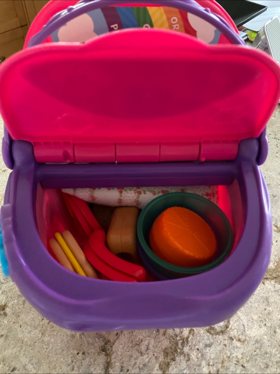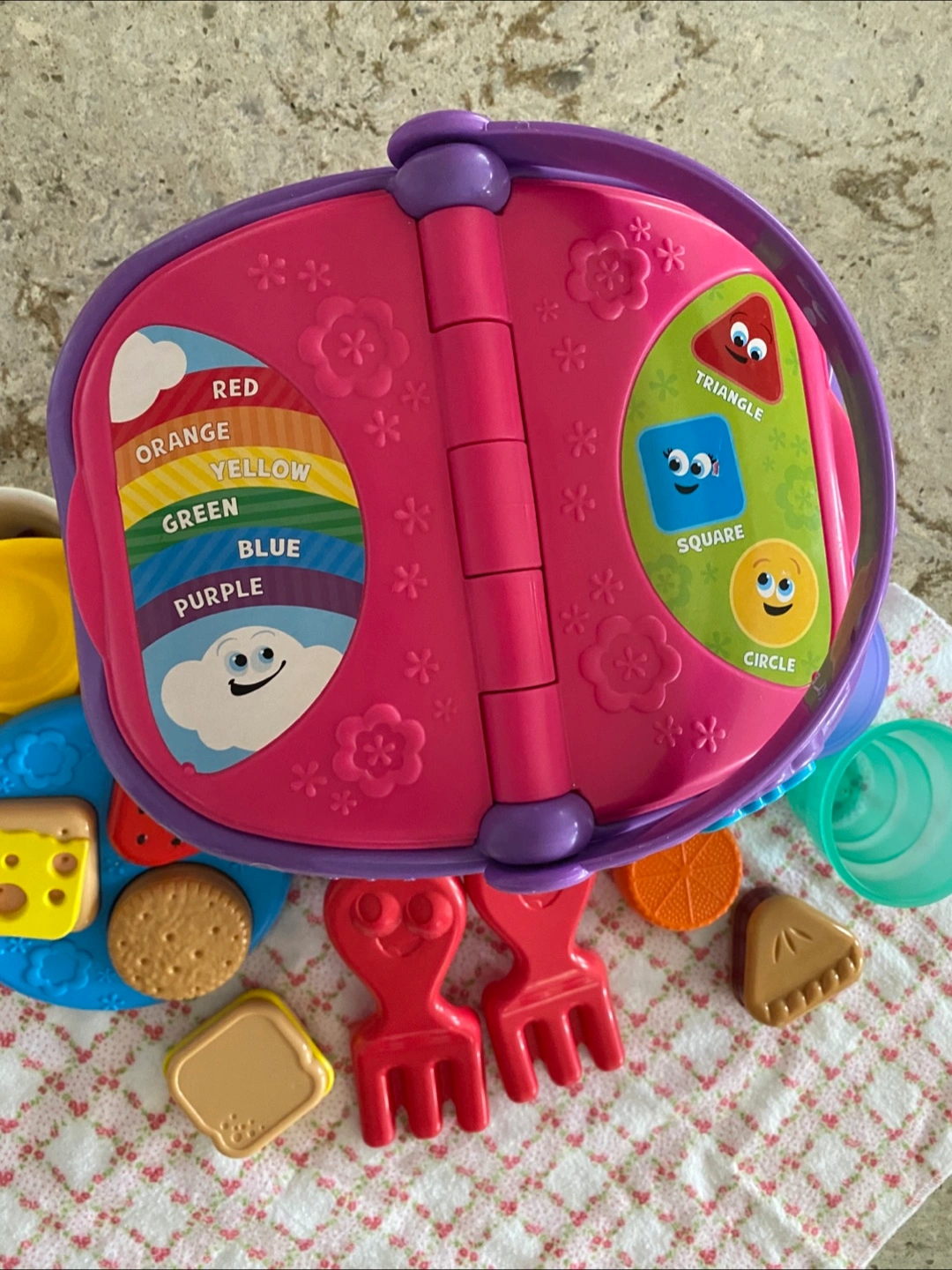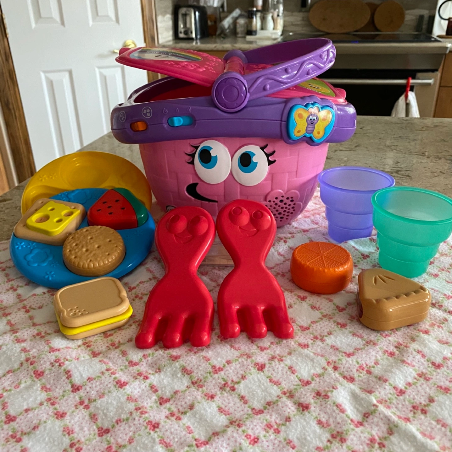 This LeapFrog picnic basket is perfect for your little one! It's a fun and interactive toy that helps teach shapes, colours, and sharing. Comes with all the play food and utensils shown in the pictures. Hours of fun guaranteed!