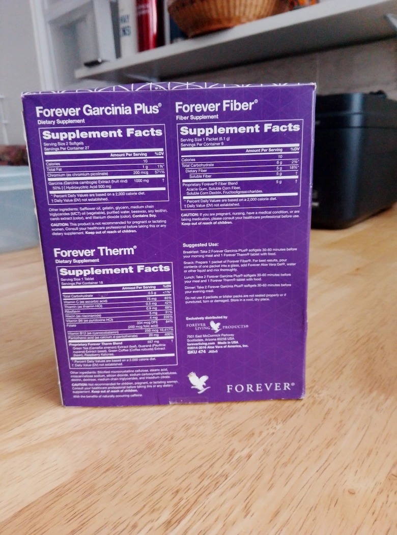 Selling a Forever Living C9 Dietary Supplement Kit. Each carton contains: 54 Forever Garcinia Plus softgels, 18 Forever Therm tablets, and 9 Forever Fiber packets. This kit is designed to help you look better and feel better! It includes Garcinia Plus, Fiber, and Therm supplements to support your dietary goals