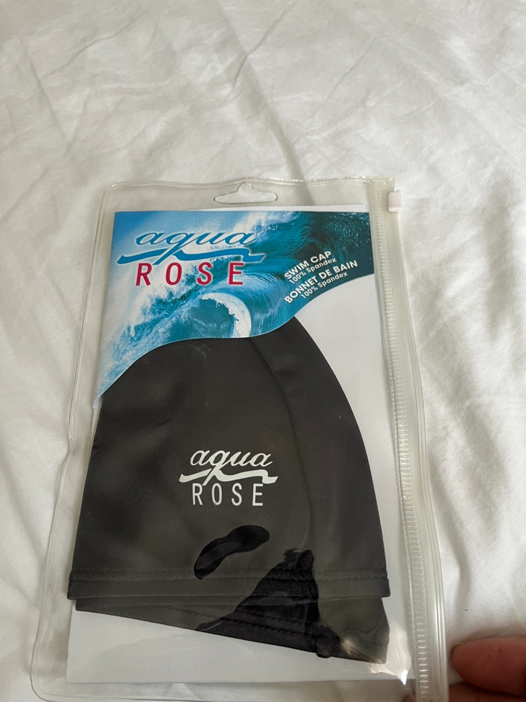 This Aqua Rose swim cap is brand new and still in its original packaging! It's made of 100% spandex, making it comfortable, lightweight, and quick-drying. Perfect for your next swim!