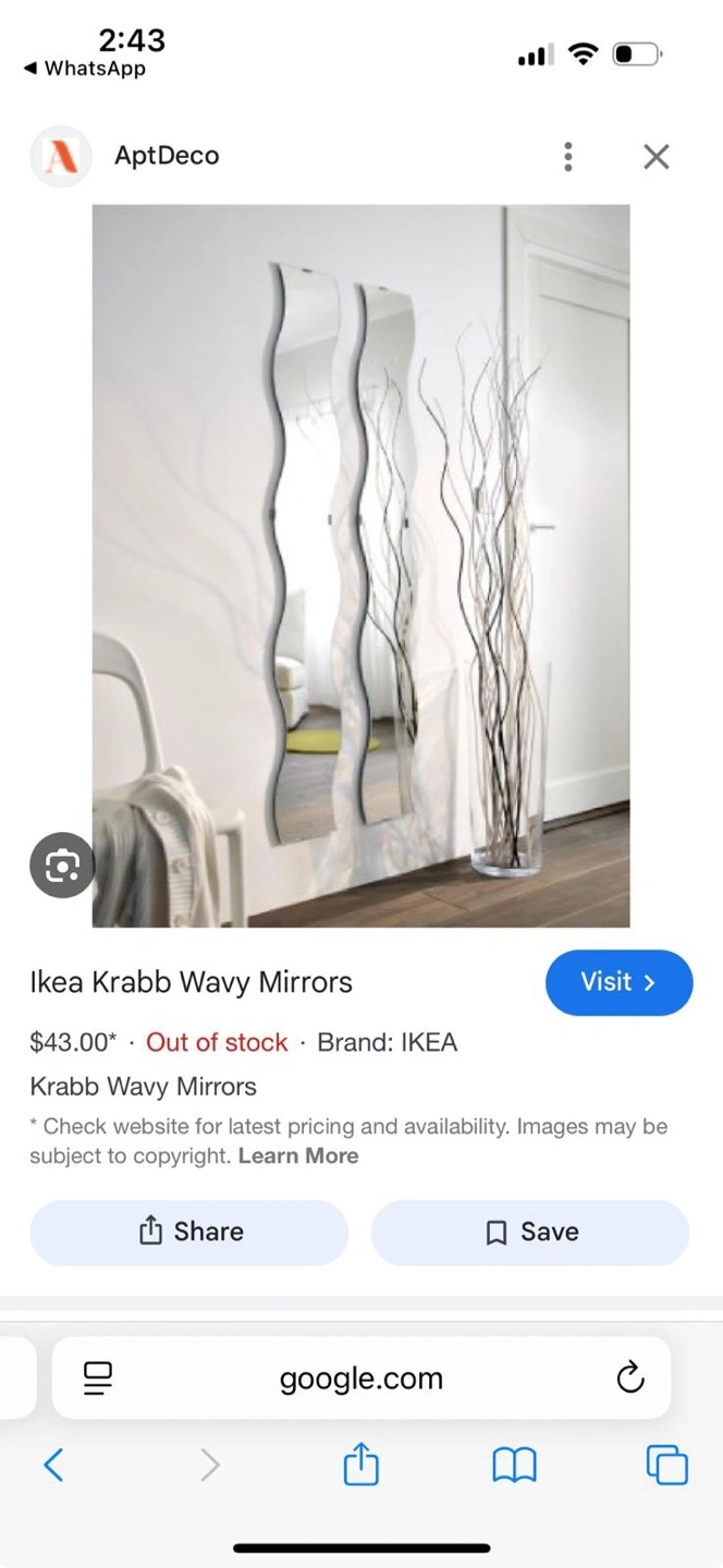 Selling an IKEA Krabb full length wavy mirror! It's a stylish and unique piece to add to your home decor. Vintage mirrors— This mirror is sure to make a statement in any room— $40 for both-