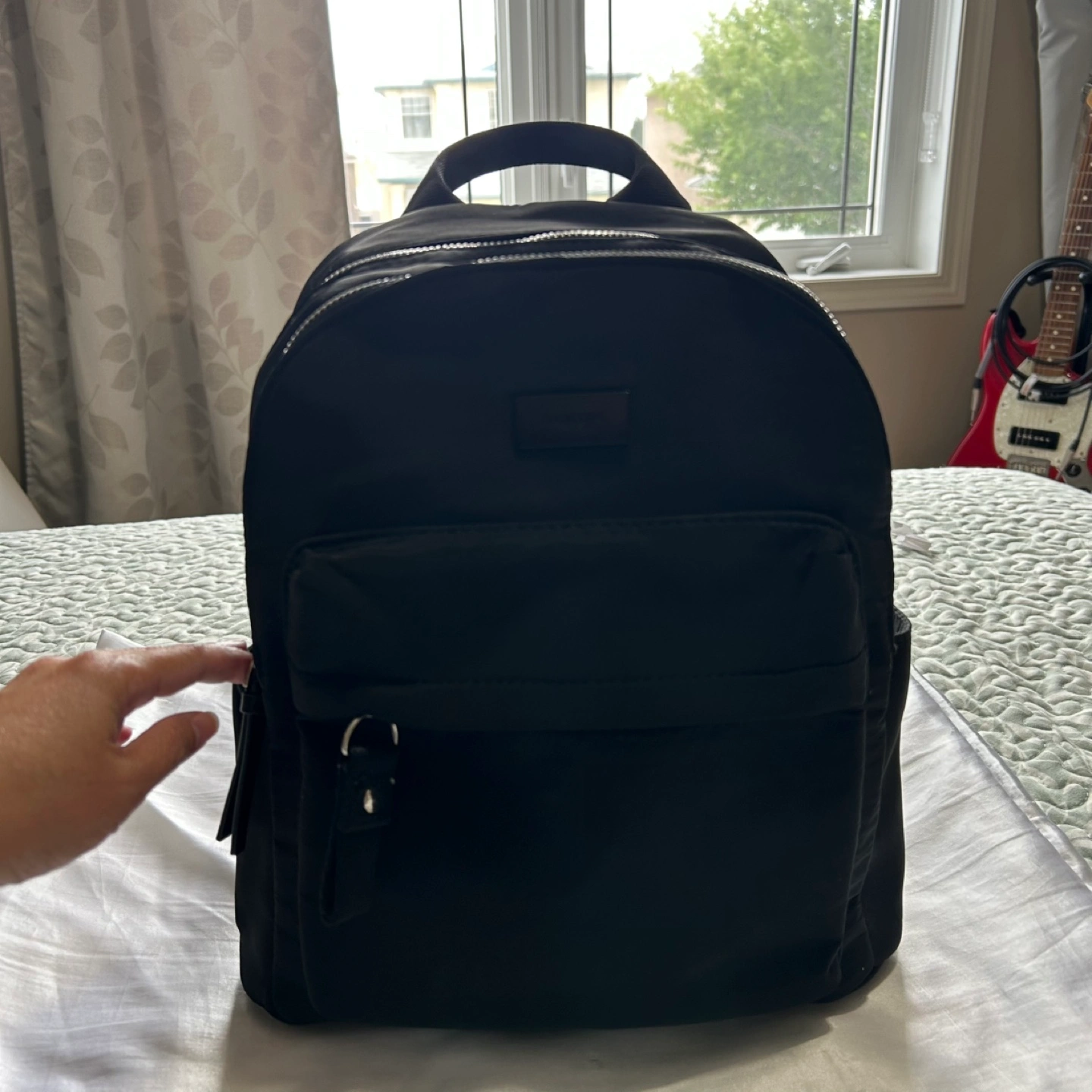 This is a cute black mini backpack by Parfois! It's perfect for carrying your essentials while keeping your hands free. The backpack features adjustable straps and multiple compartments to keep you organized