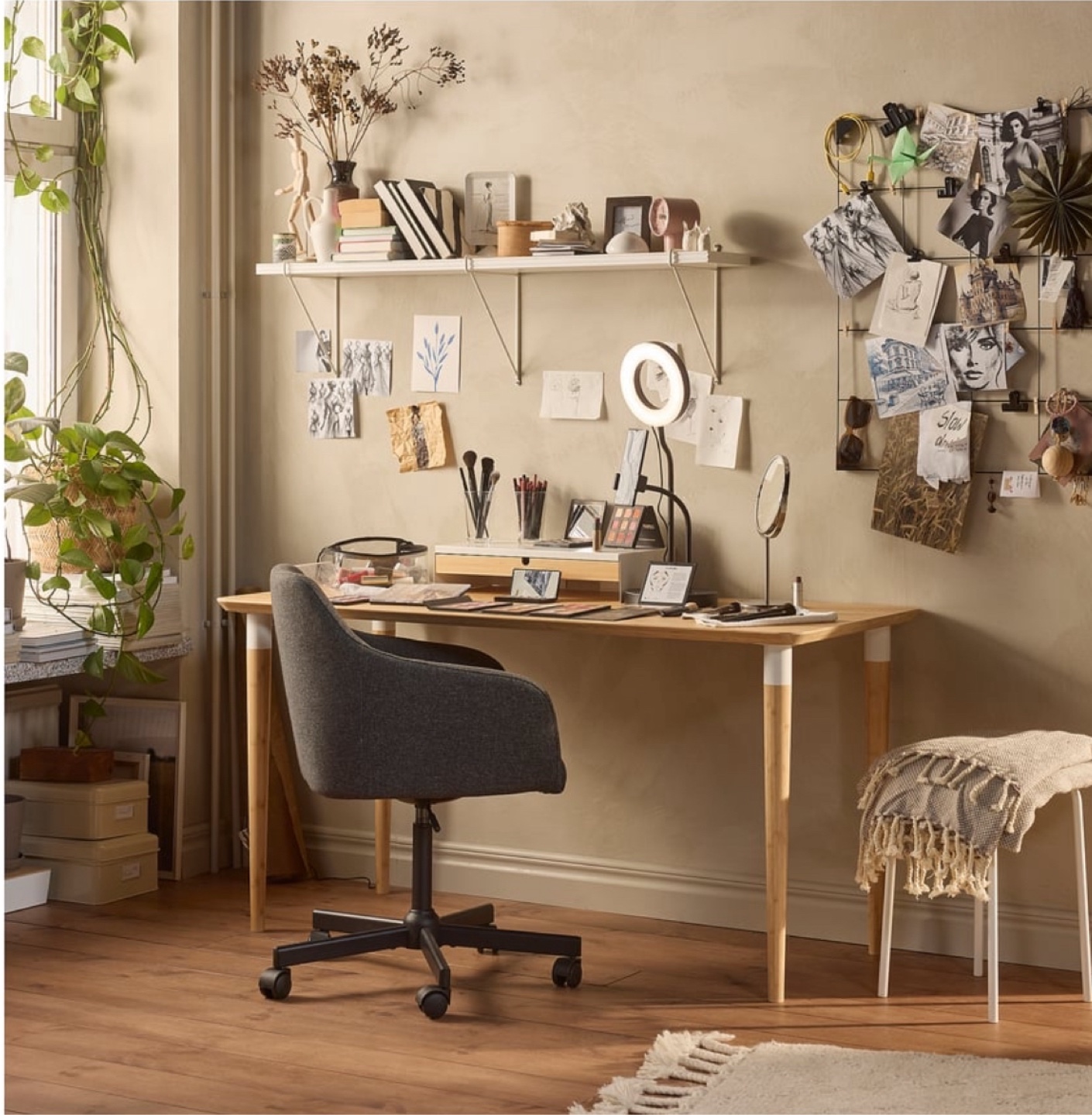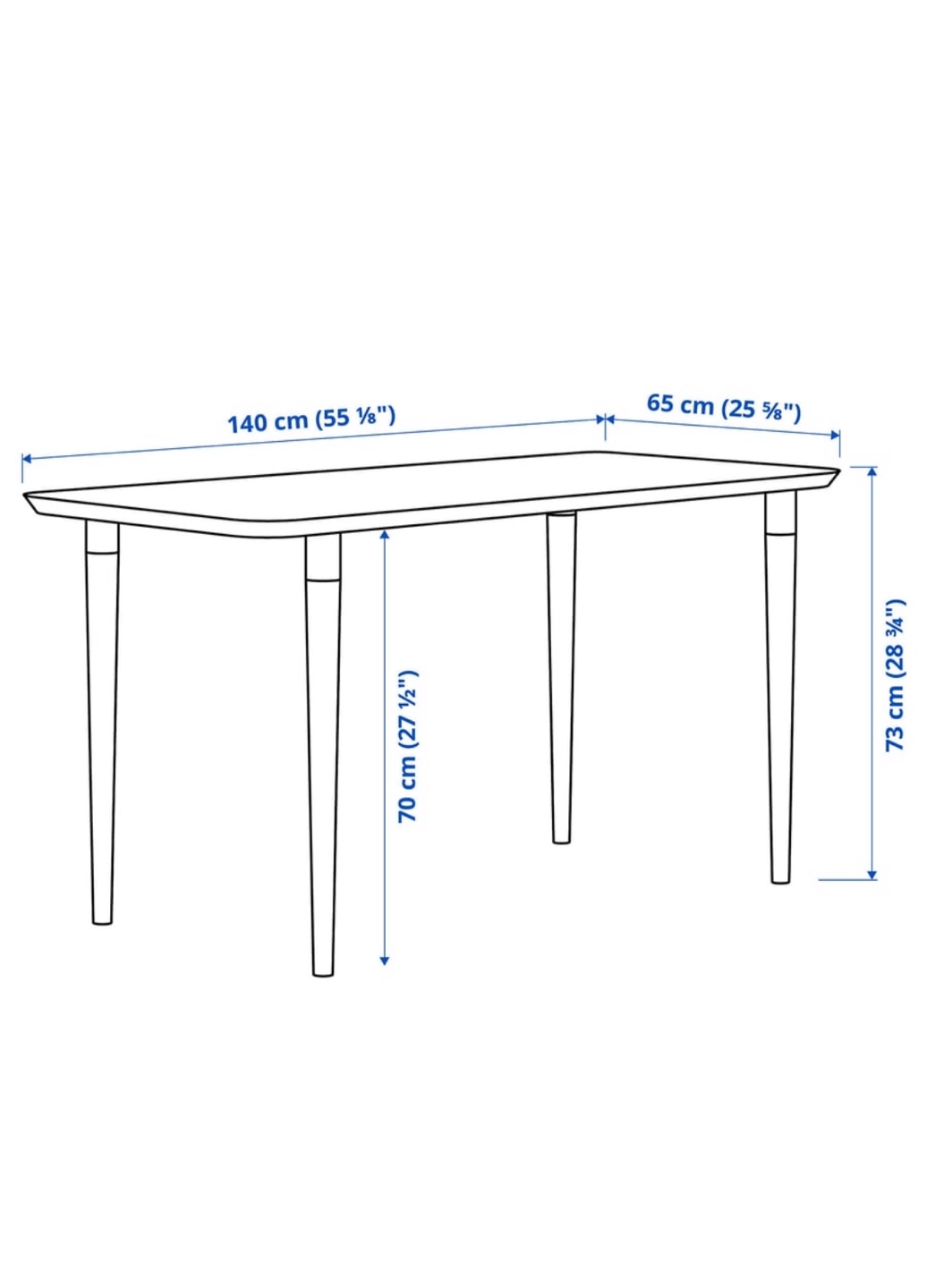 This IKEA Hilver table is perfect as a desk or dining table! The dimensions are 140 cm (55 1/8") in length and 65 cm (25 5/8") in width, with a height of 73 cm (28 3/4") lm