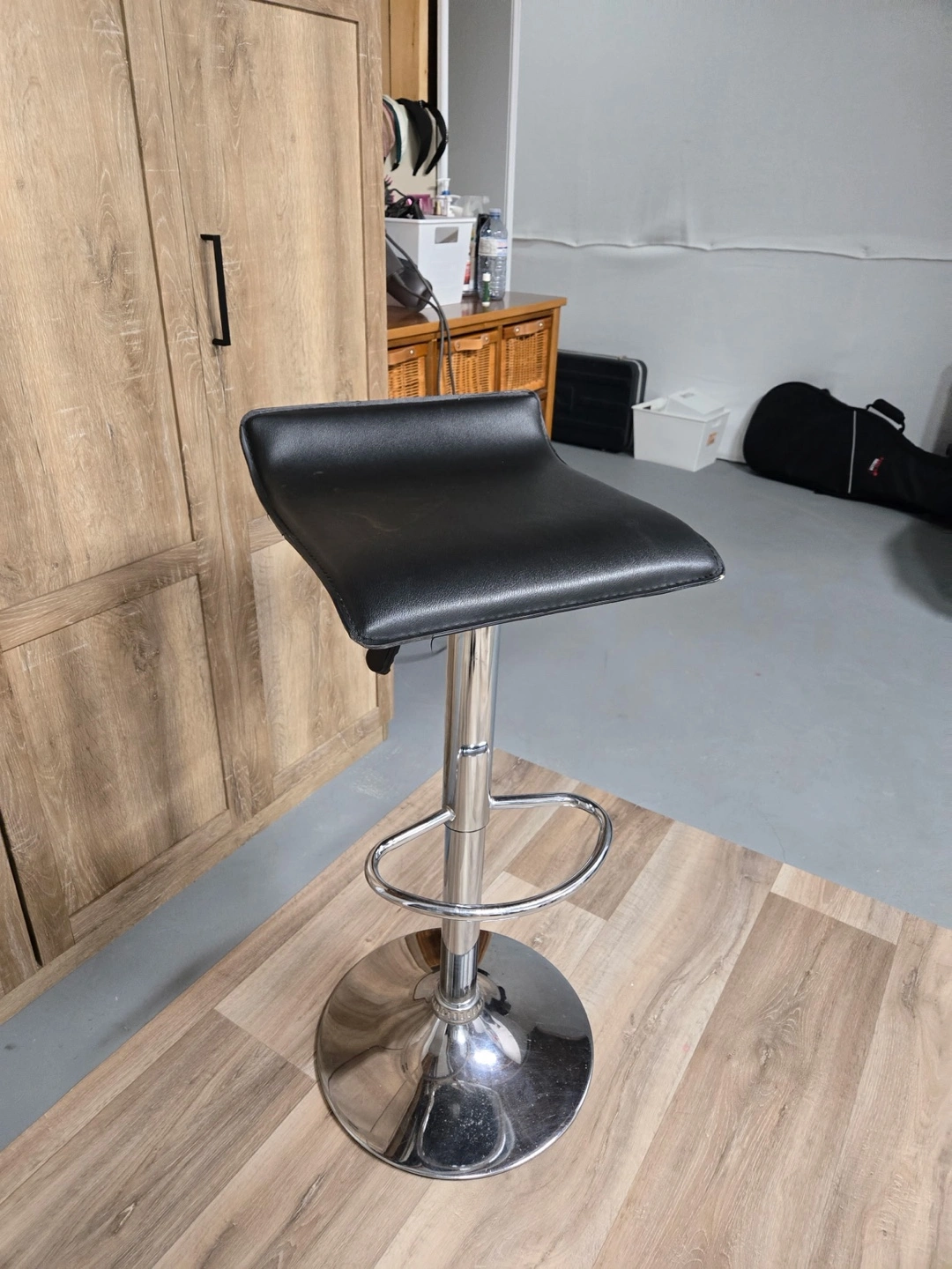 Buy & SellBlack Adjustable Height Bar StoolBlack Adjustable Height Bar Stool$20Selling a black bar stool with adjustable height. It has a chrome base and a black seat. Perfect for a kitchen counter or bar area!ConditionGoodWHERE TO MEETCheck LocationView MapSELLERverifiedMariverEaux Claires881 review0 chats·0 favorites·16 viewsSEND CHAT TO SELLERHi Mariver! I’m interested in your listing.Hi Mariver! I’m interested in your listing.Get the Karrot app to chatSign In to chat