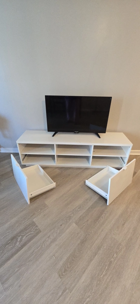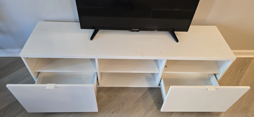 Selling a sleek white IKEA TV unit, perfect for any living room setup.