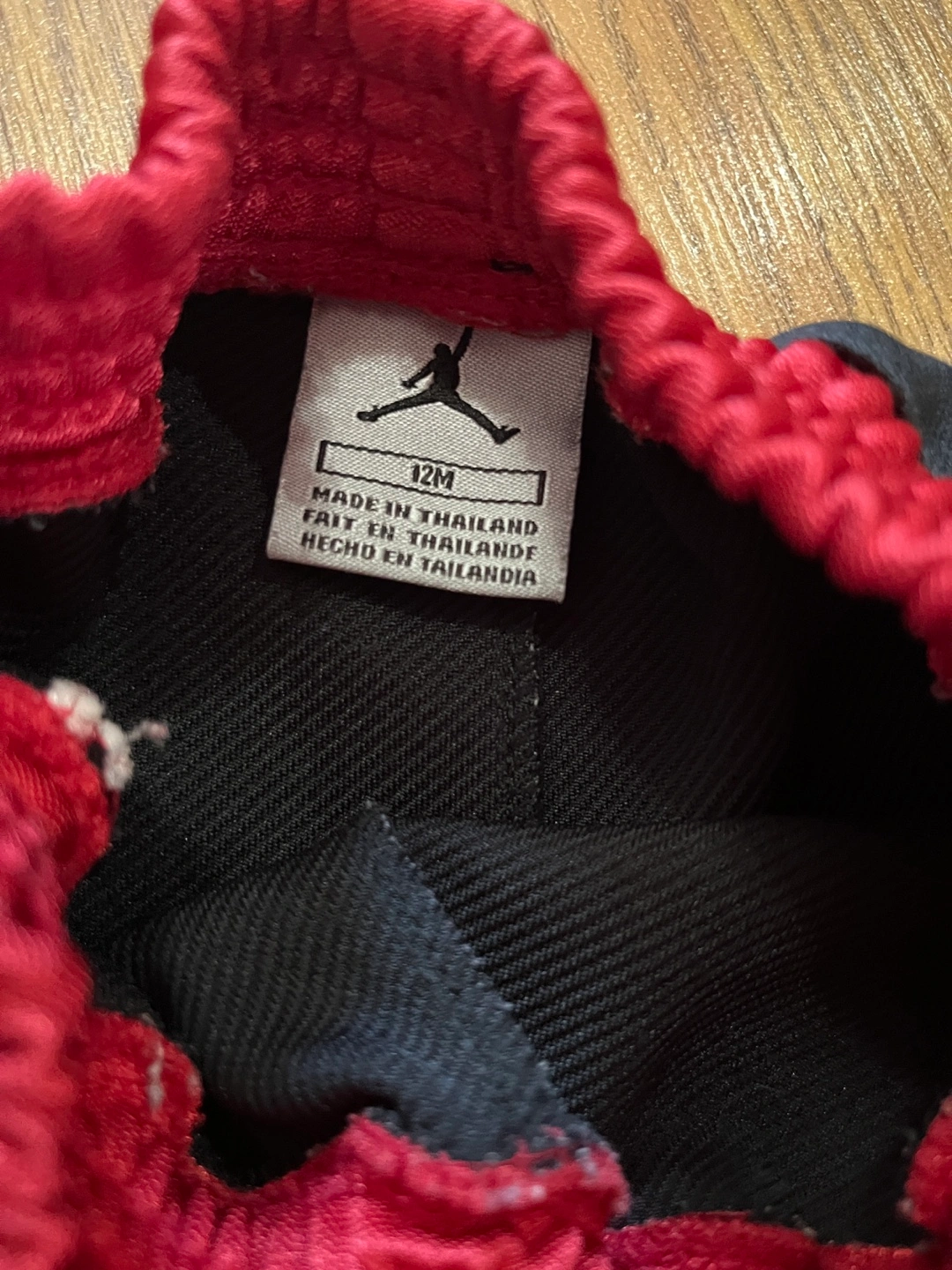 Infant boys Air Jordan shorts, size 12 months. Black with red accents and Jumpman logo. Minor snags on the back. Smoke-free home. Great for active little ones.