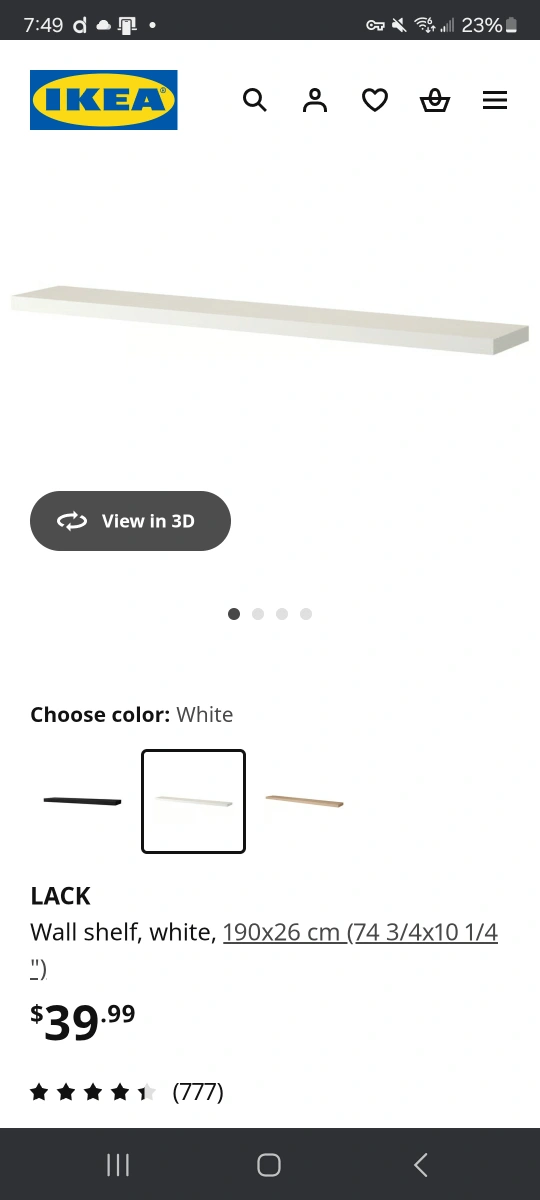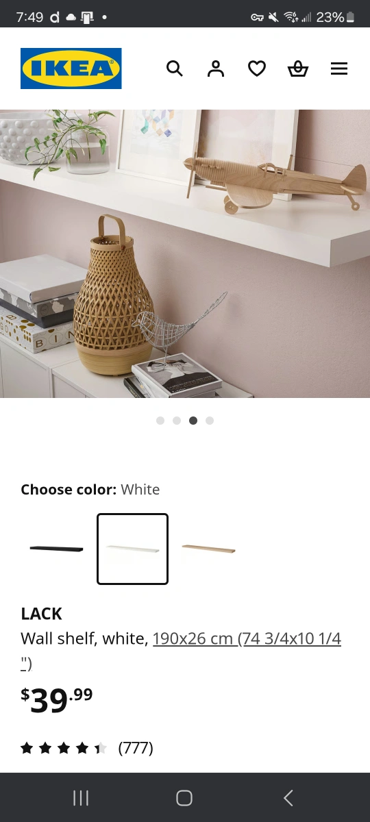 Pickup ASAP -- Donating Sept 30th @ 12pm. Rehoming an IKEA LACK wall shelf in white. It measures 190x26 cm (74 3/4x10 1/4). Perfect for adding a simple and stylish storage solution to any room! Once mounted the highlighted above is unnoticable but worth noting :)