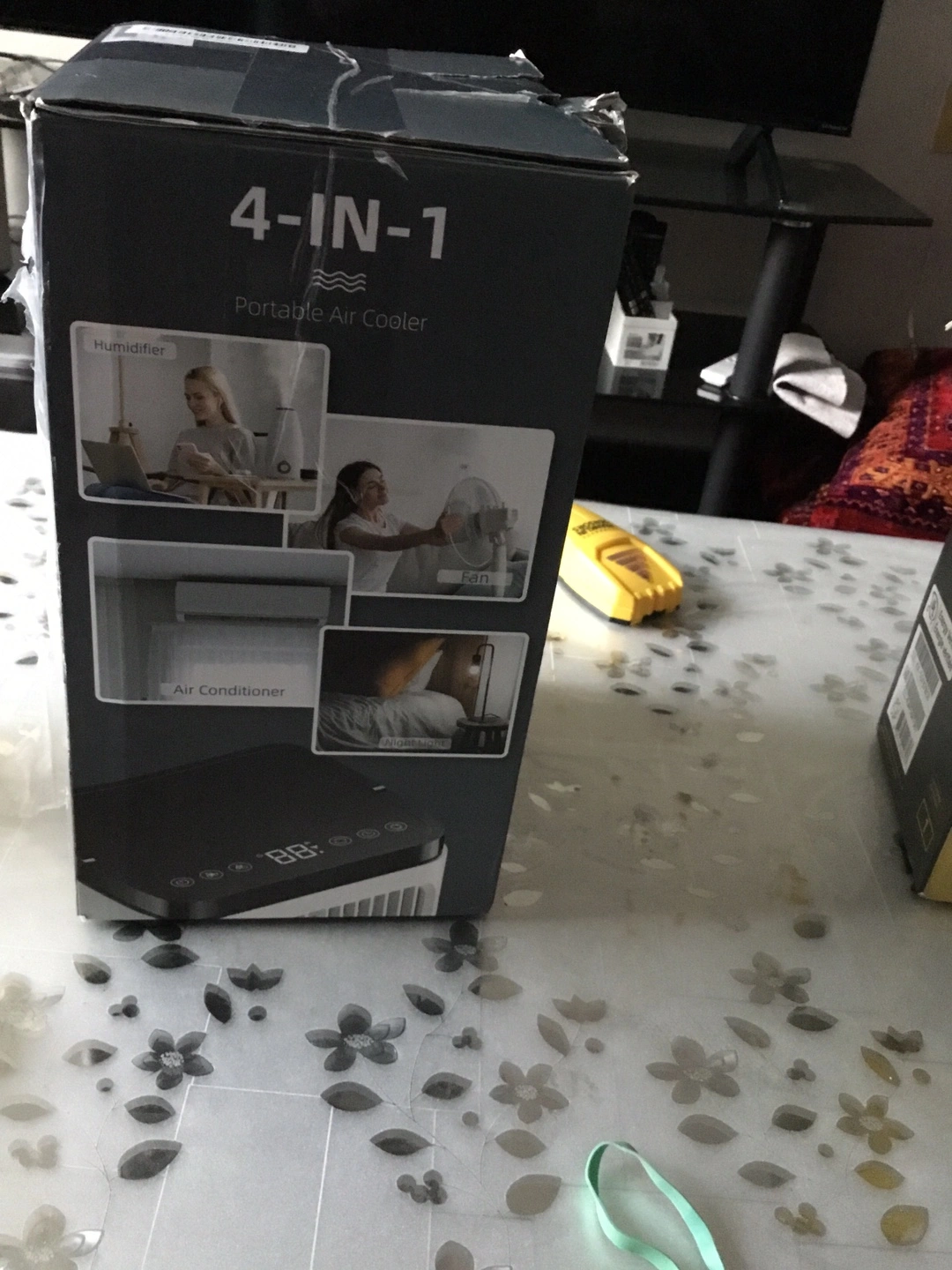 18Selling a brand new 4-IN-1 portable air cooler! It's still in its original box and ready to keep you cool and comfortable. This cooler features: - 4 adjustable wind speeds - Fast cooling - Spray mode - 8H timer - 90° oscillating - 7 colors night light