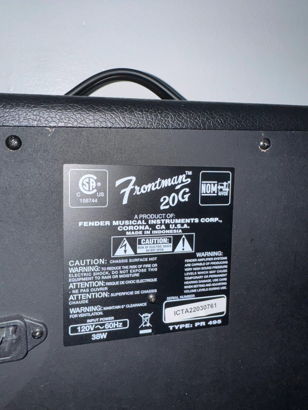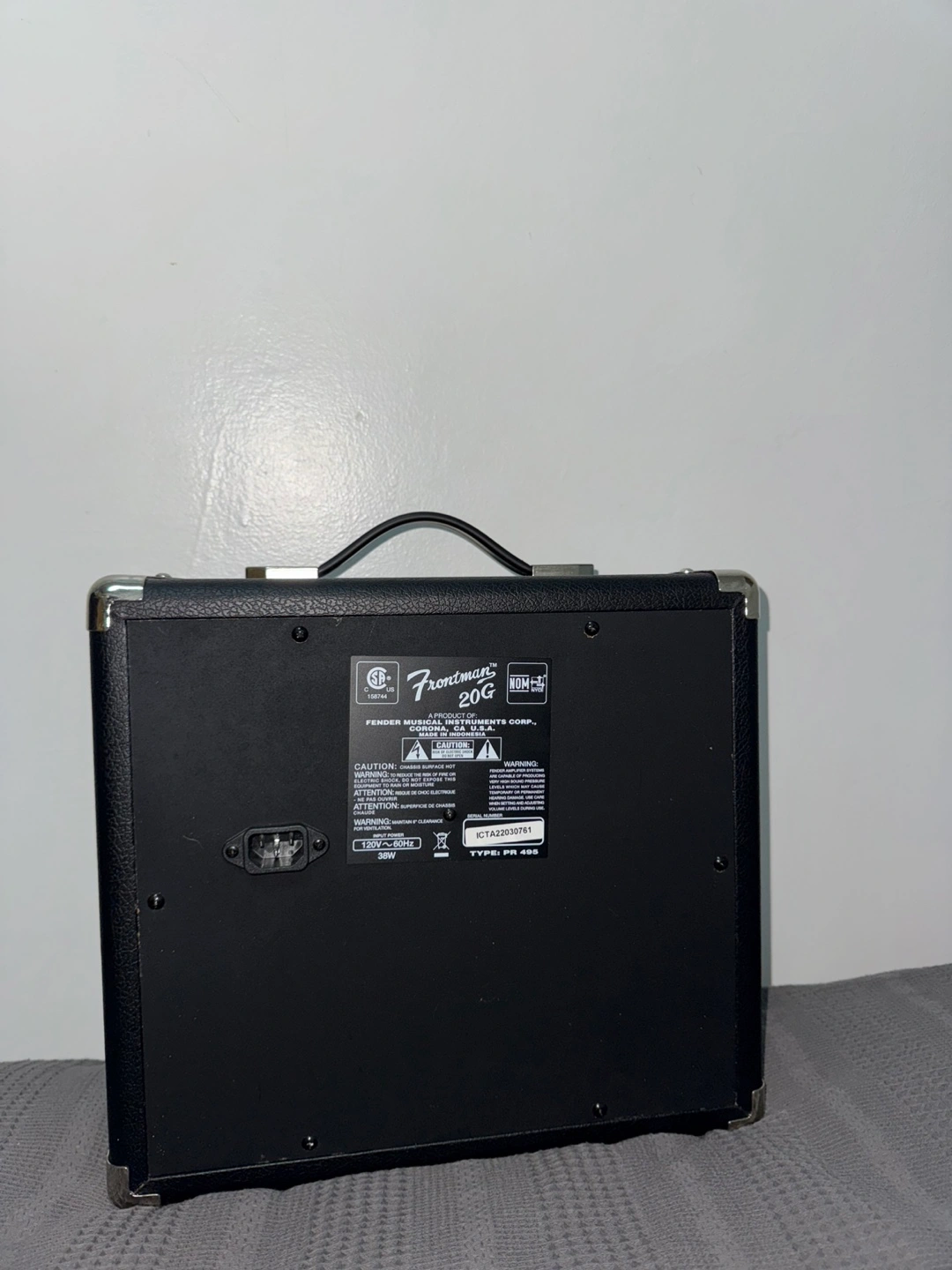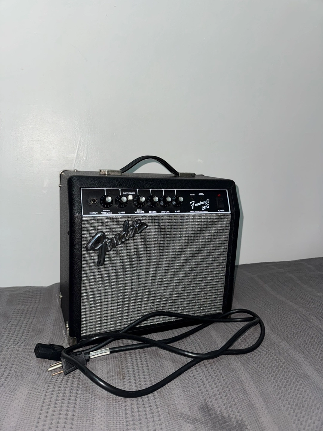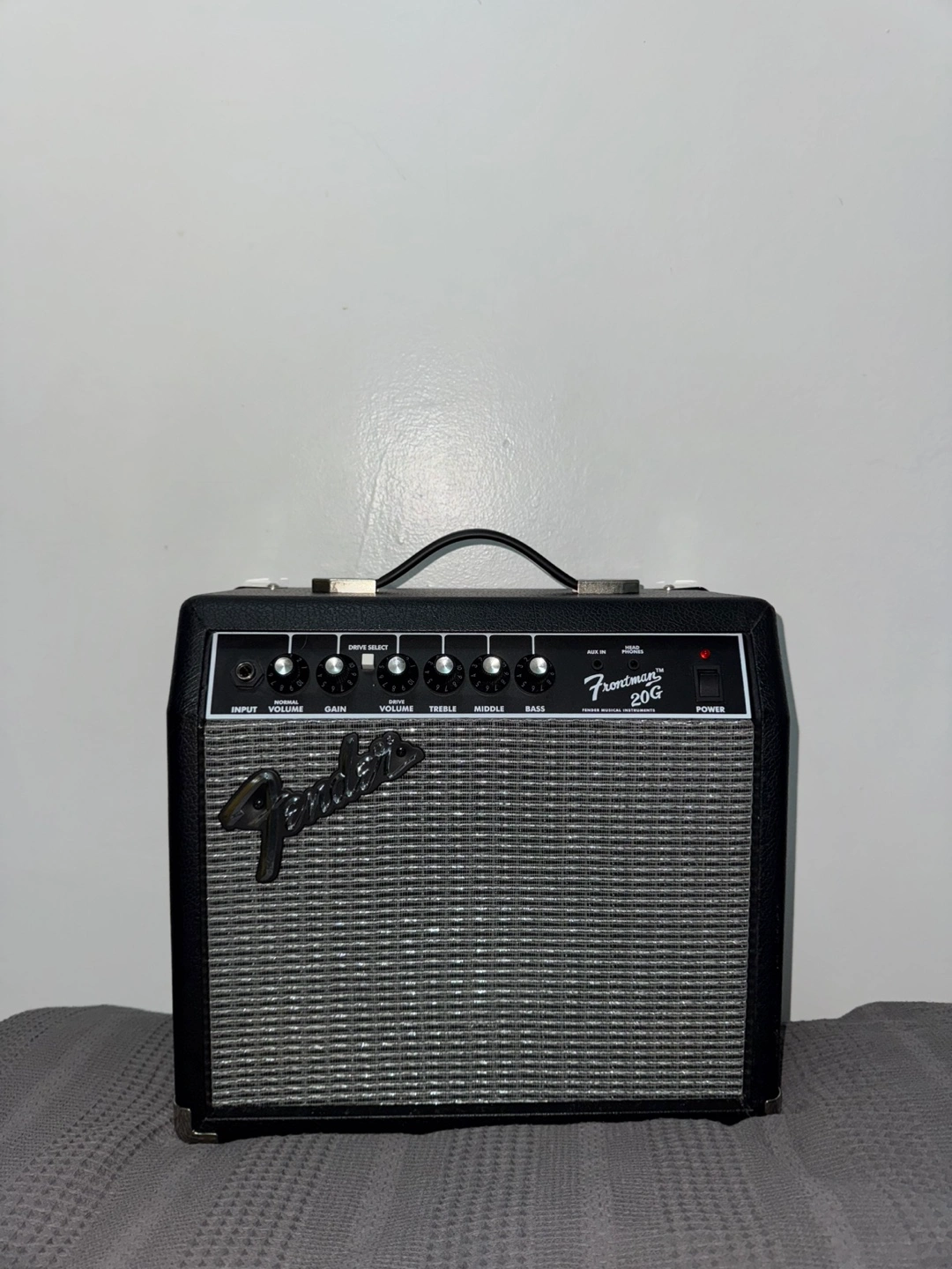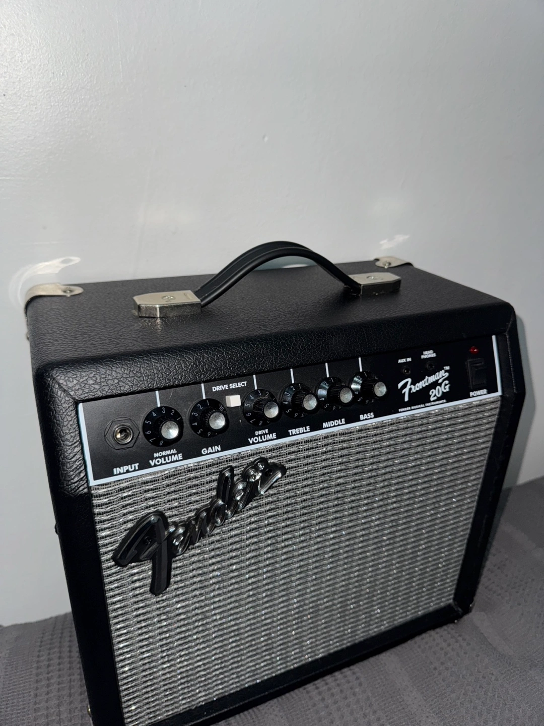 Selling a Fender Frontman 20G guitar amplifier. It's in great condition and ready for a new home. This amp is perfect for practice or small gigs. It features drive select, volume, treble, and bass controls to dial in your sound. Get that classic Fender tone!
