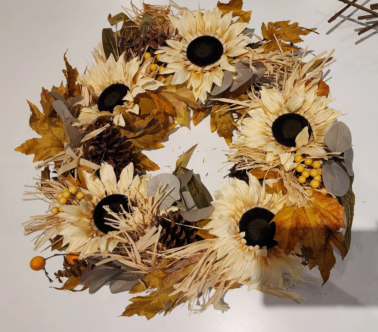 🍂 Dense and detailed with faux leaves and berries