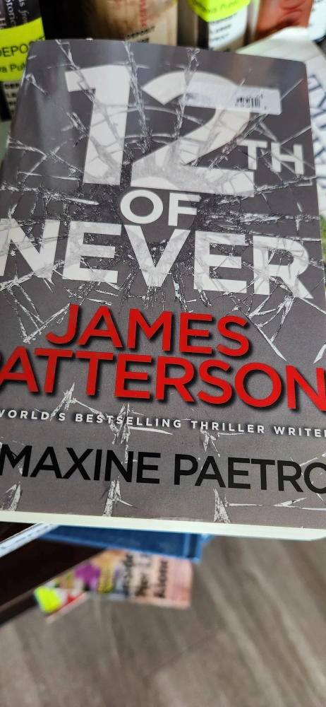 Selling the book '12th of Never' by James Patterson and Maxine Paetro. It's a thriller novel, perfect for anyone who enjoys a good mystery! The cover has a unique texture. retail 12.99new book
