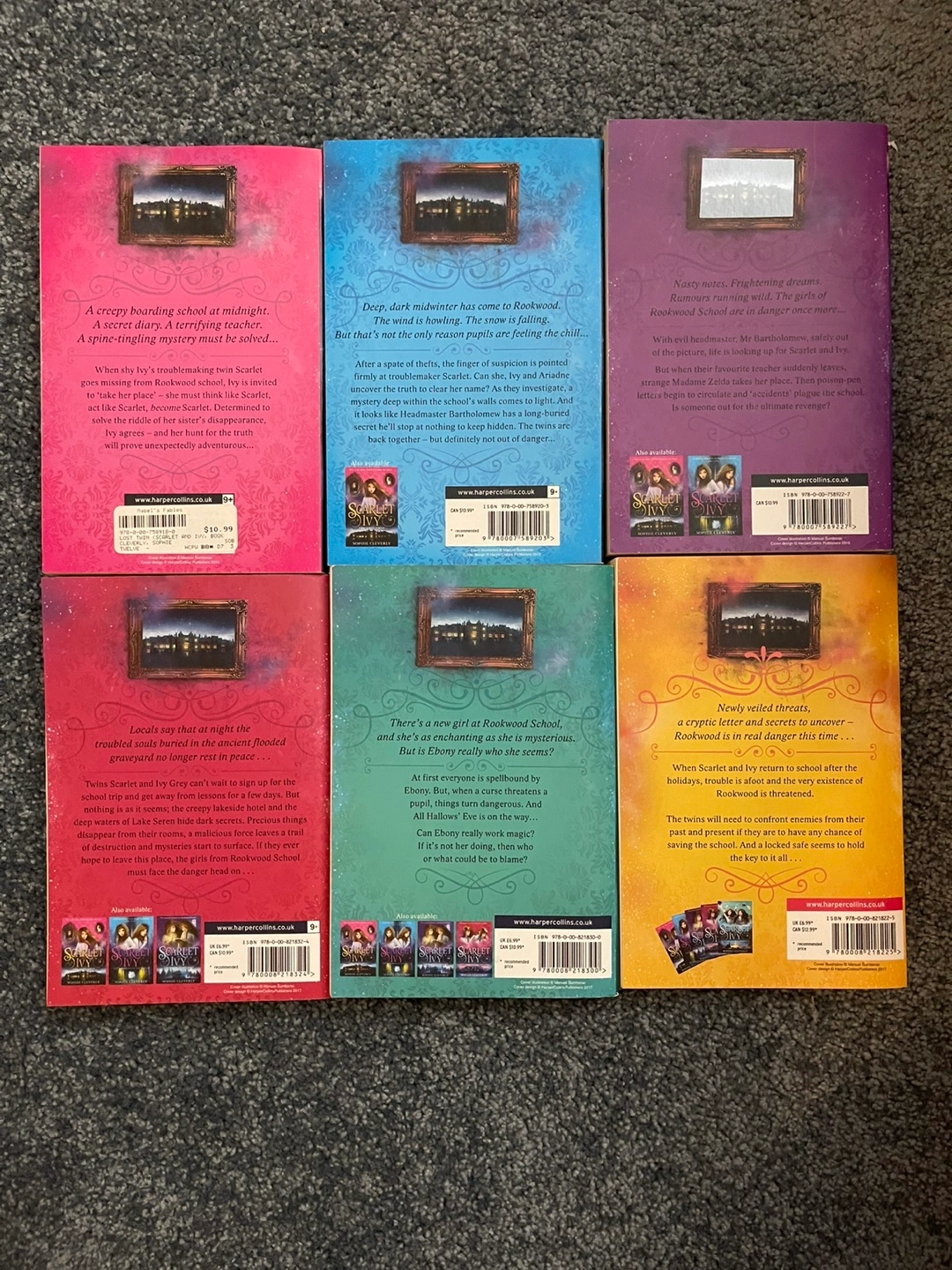 The books follow the adventures of Scarlet and Ivy Grey, thirteen-year-old twins who attend Rookwood School, an English boarding school in the 1930s. Summaries on the back!!