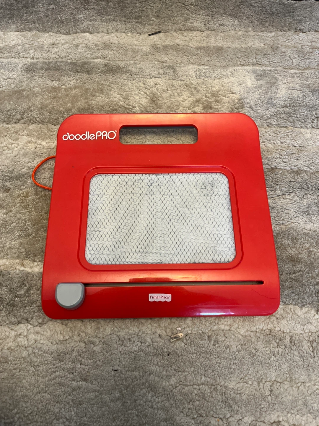 This red Fisher-Price DoodlePRO Travel Lite allows for mess-free drawing fun on the go! It's easy for kids to carry and create their masterpieces anywhere. The drawing surface is durable and built for little hands.