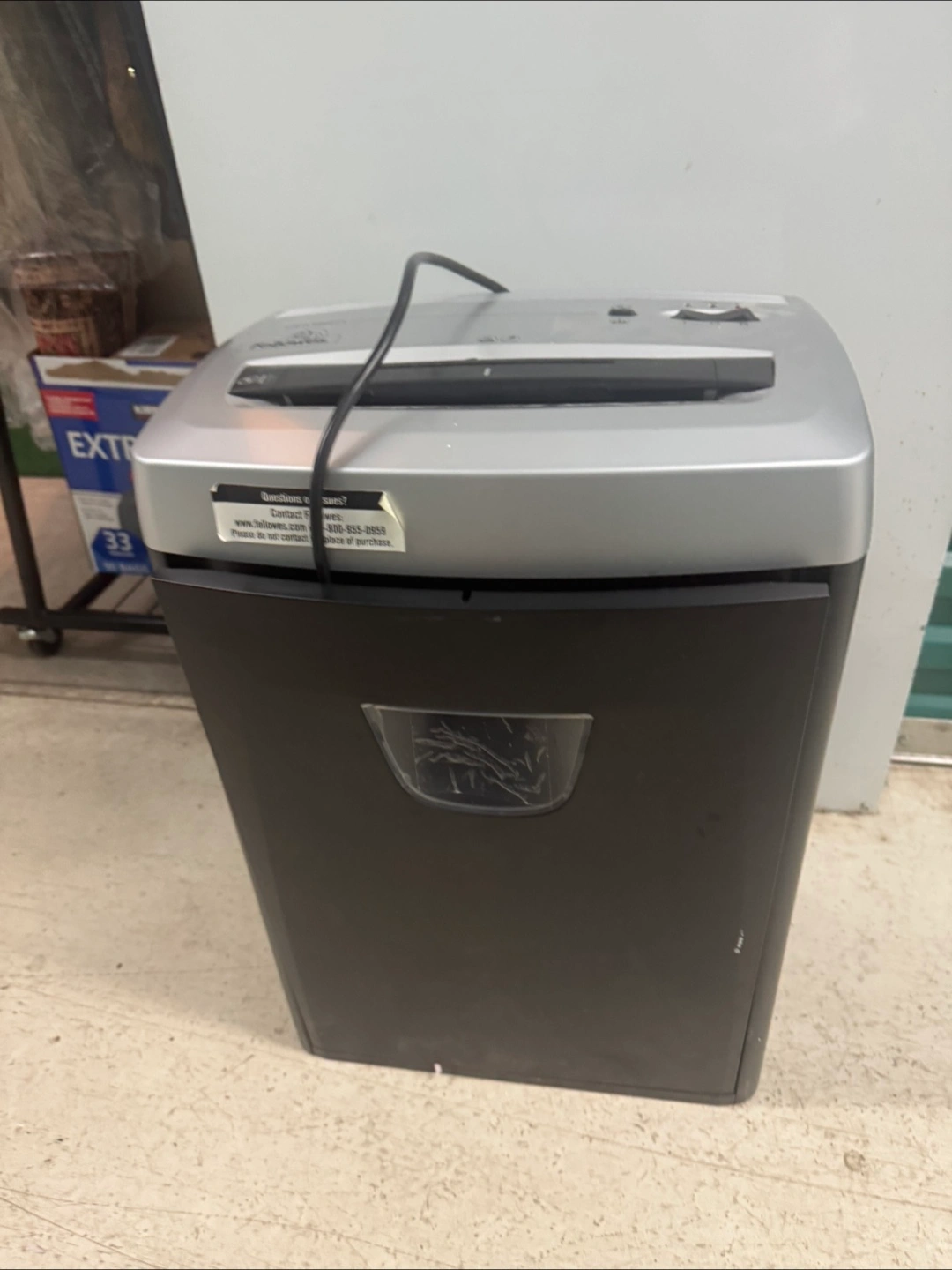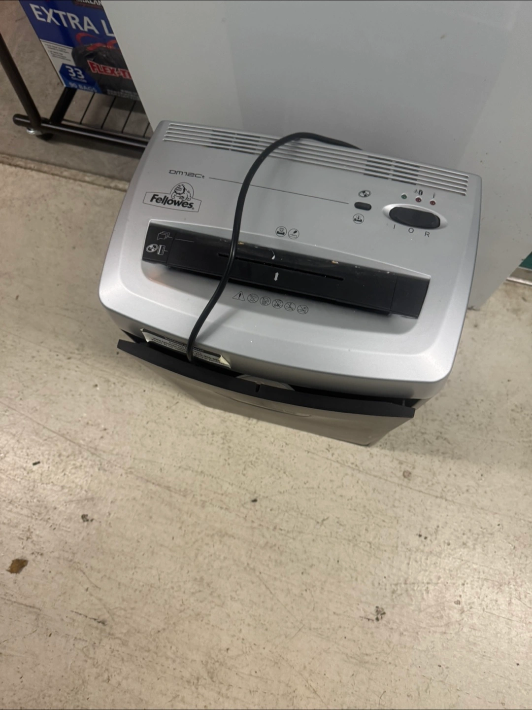 Selling a Fellowes DM12Ci paper shredder. It is gray and black. Perfect for home or office use to keep your documents secure!
