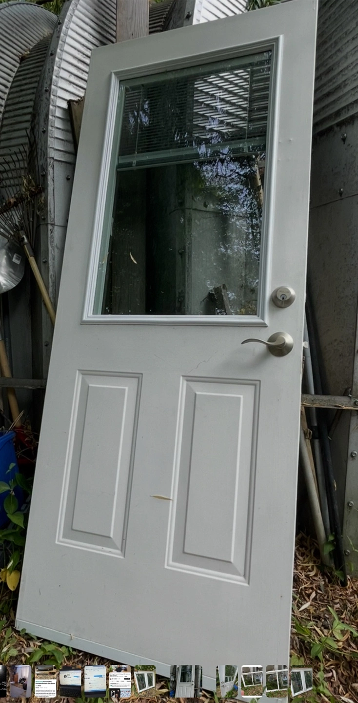 Selling a used white exterior door that features a window. It would be great for a home renovation project or to replace an existing door. It's in good condition and ready for a new home!
