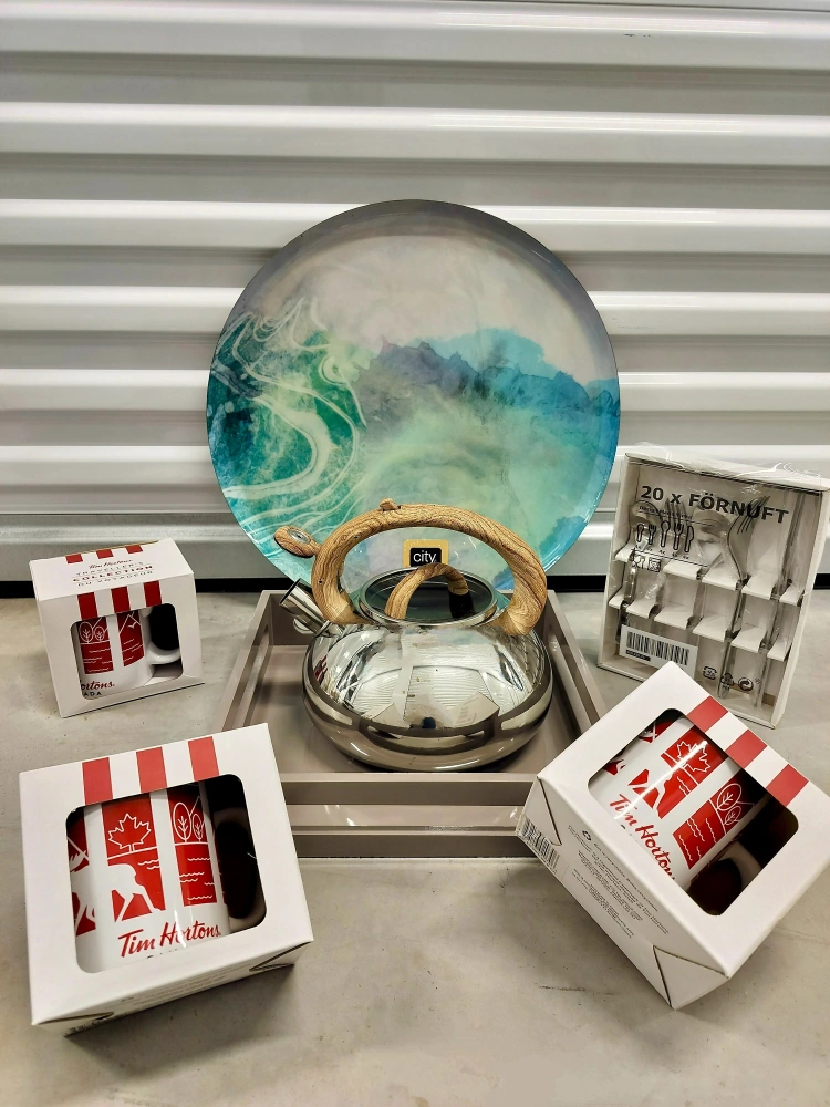 Selling a Tim Hortons mug set, still in its original packaging. Also included is a silver kettle with a wooden handle. Perfect for any Tim Hortons fan or anyone looking to add a touch of Canadian charm to their kitchen!