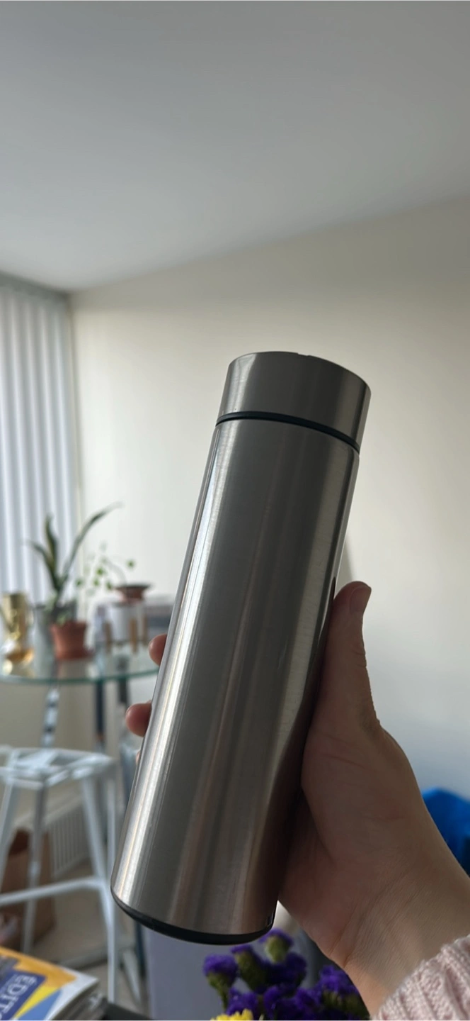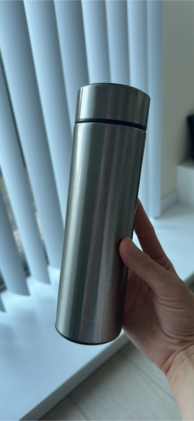 Selling a stainless steel thermal bottle. It's in great condition and perfect for keeping your drinks hot or cold on the go! The bottle has a sleek, modern design and is made of durable stainless steel. It also includes a filter inside.