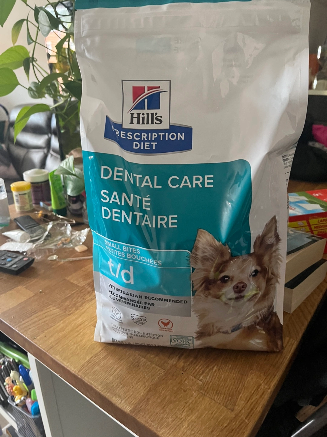 Selling a bag of Hill's Prescription Diet Dental Care t/d dog food. It's the small bites, perfect for smaller dogs! This veterinarian-recommended food helps with dental care and is a therapeutic dog nutrition option. Originally bought for $71.90