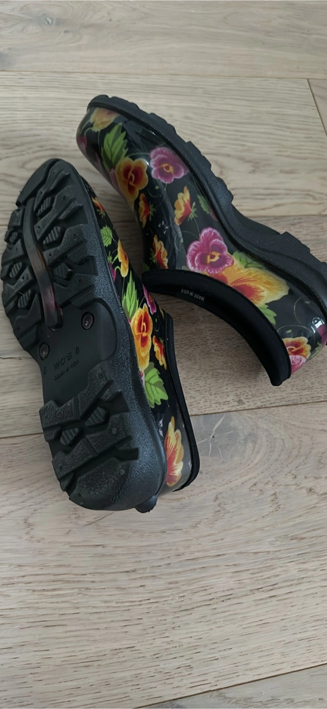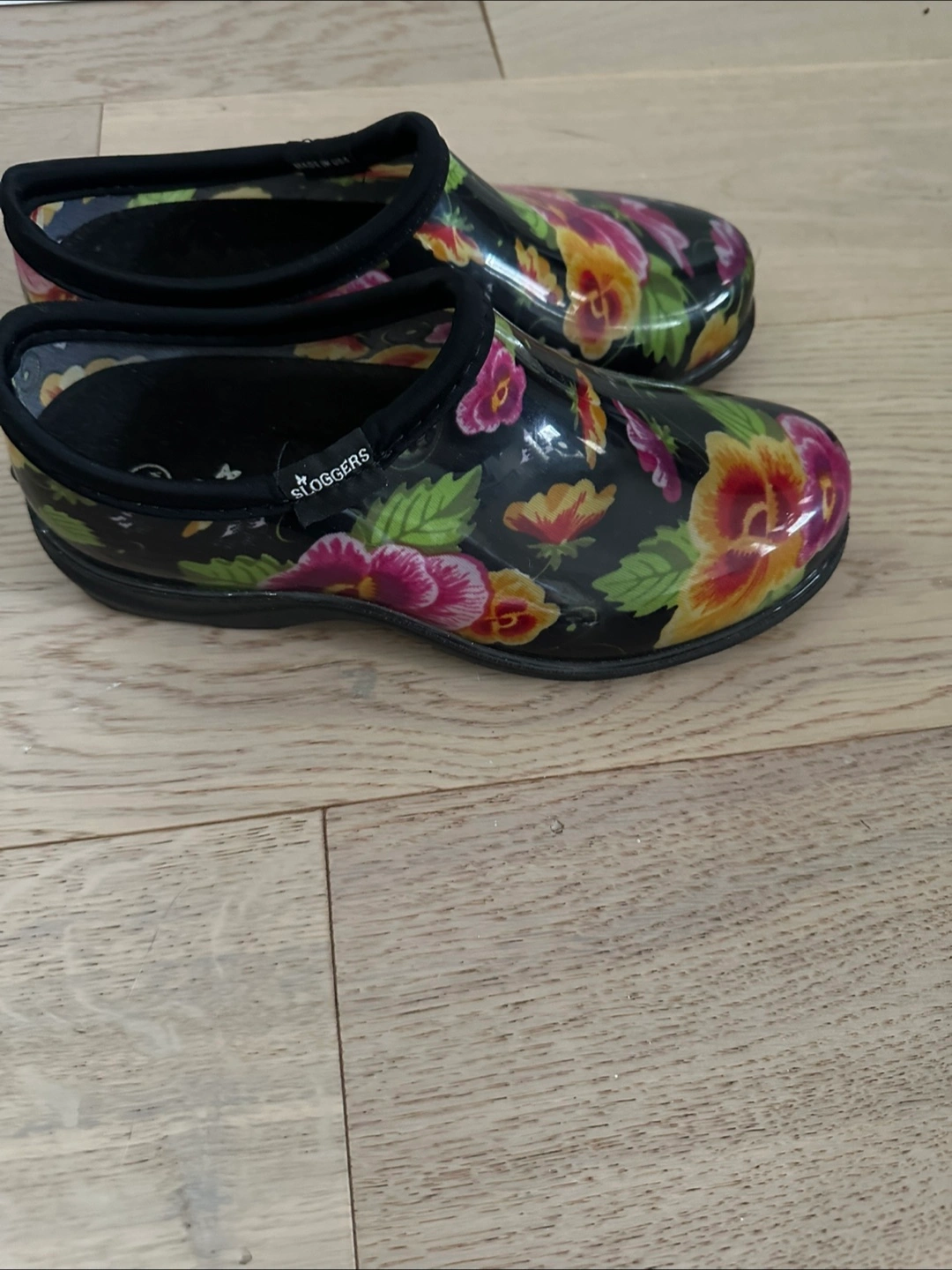 20Selling a pair of Sloggers waterproof garden shoes. They are a size 6 and feature a floral pattern. Perfect for gardening or just keeping your feet dry on rainy days!