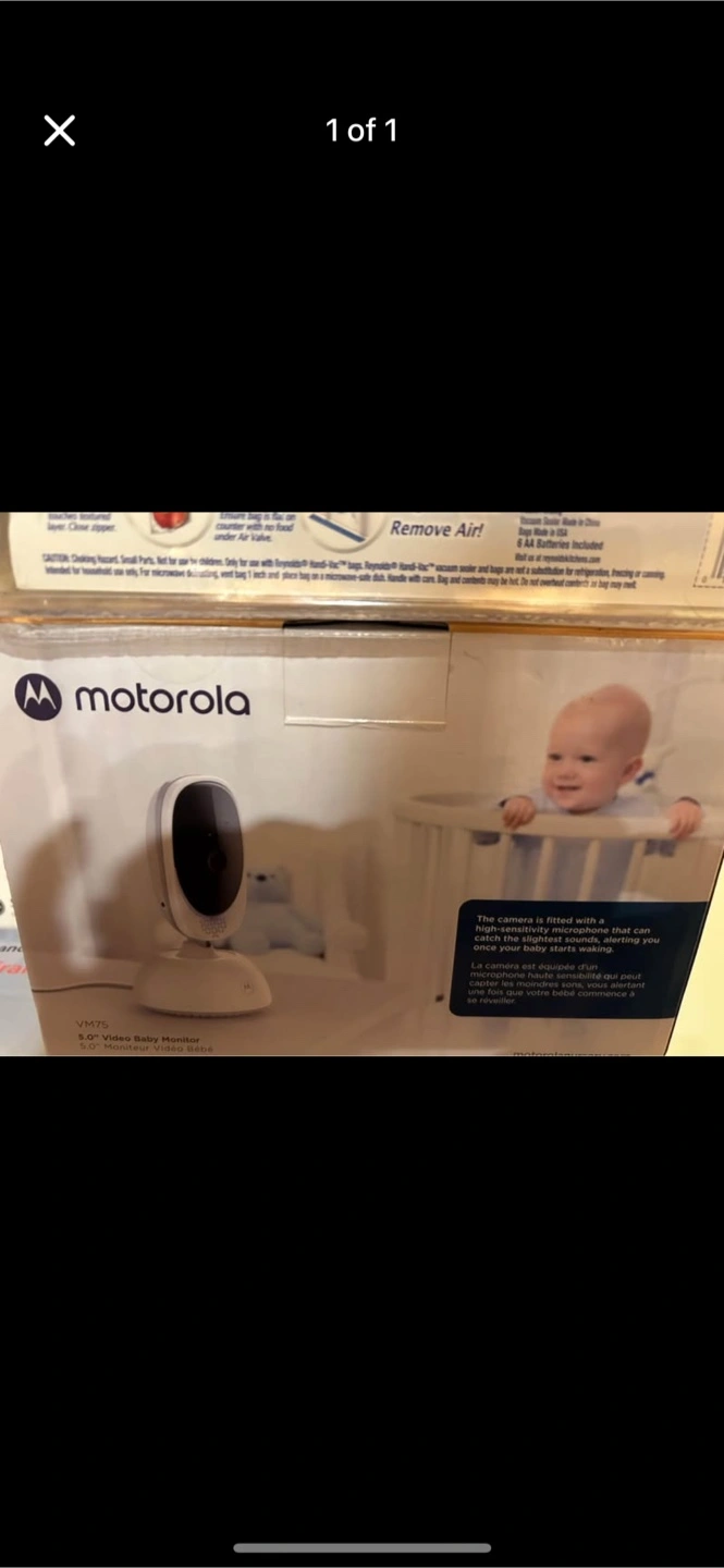 Selling a Motorola VM75 5.0" Video Baby Monitor! The box includes 6 AA batteries. The camera is fitted with a high-sensitivity microphone that can catch the slightest sounds, alerting you once your baby starts waking