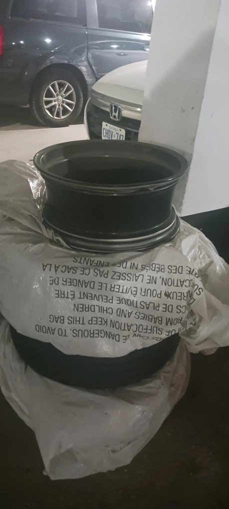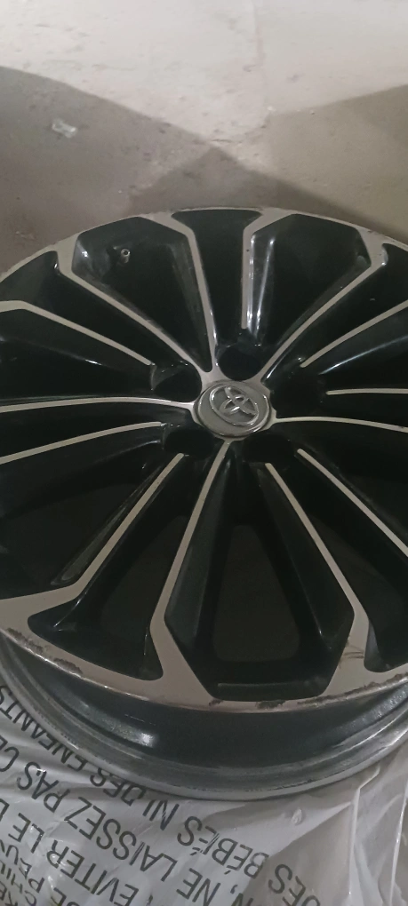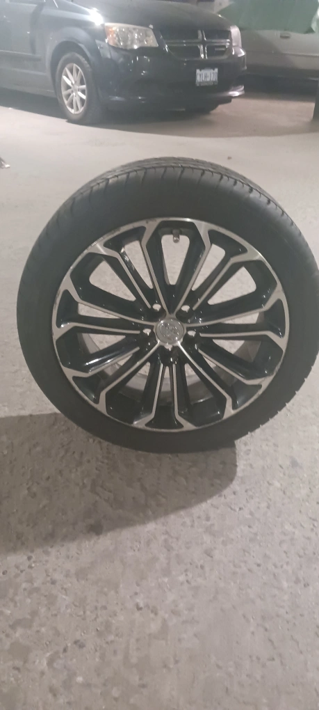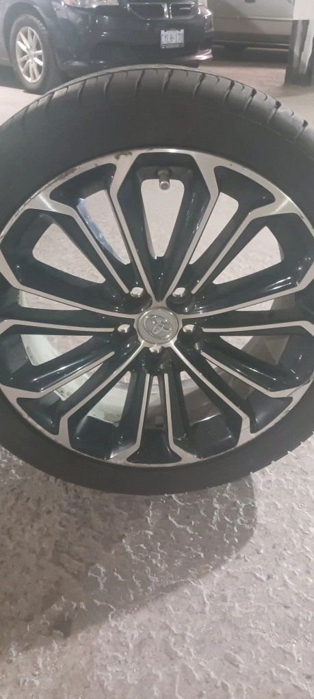 Selling a set of two Toyota tire and rims . Each tire and rim $300 They're black and silver. They are in excellent condition. Winter tires. Almost new. 2014 Toyota corolla.