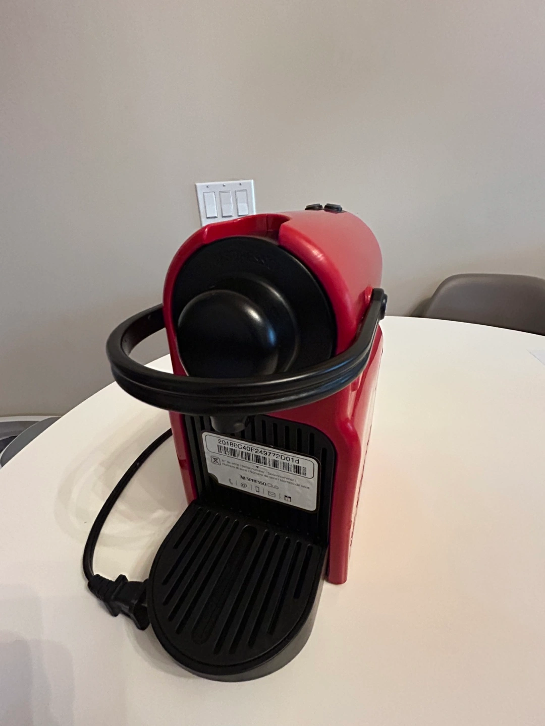 Selling a Nespresso Inissia Mini in red! It's a compact and easy-to-use coffee machine, perfect for small spaces and anyone who loves a quick espresso.