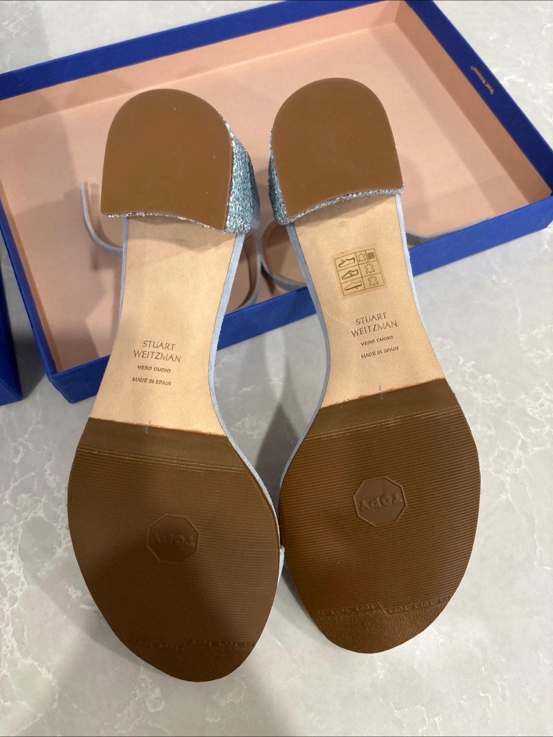 These Stuart Weitzman Simplemi sandals are a beautiful azure suede colour and are a size 7. They come with the original box. Originally bought for $525!