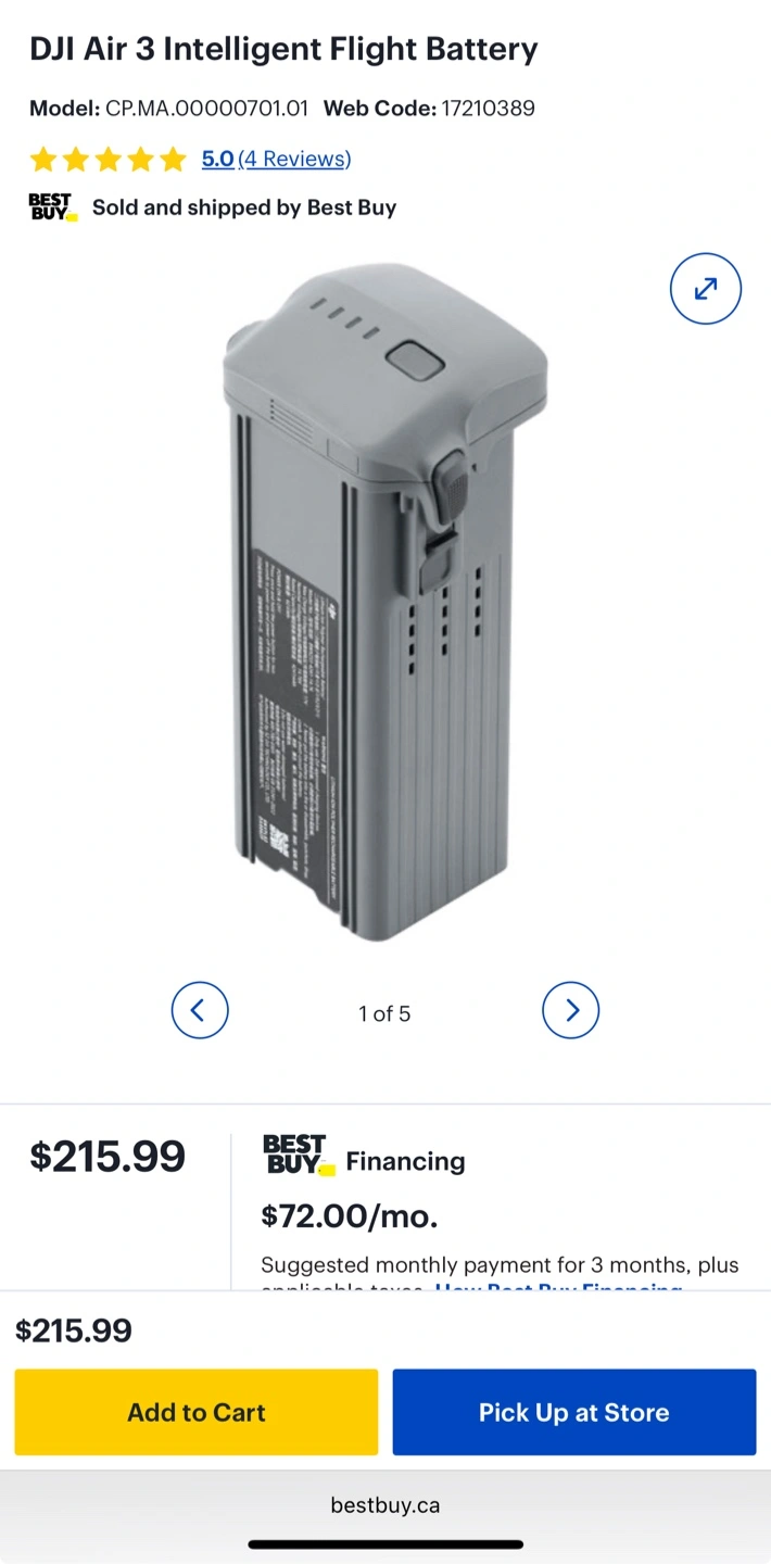 Selling a DJI Air 3 Intelligent Flight Battery. It's a Lithium Ion Polymer Rechargeable Battery. Originally bought for $215.99+ tax=$244