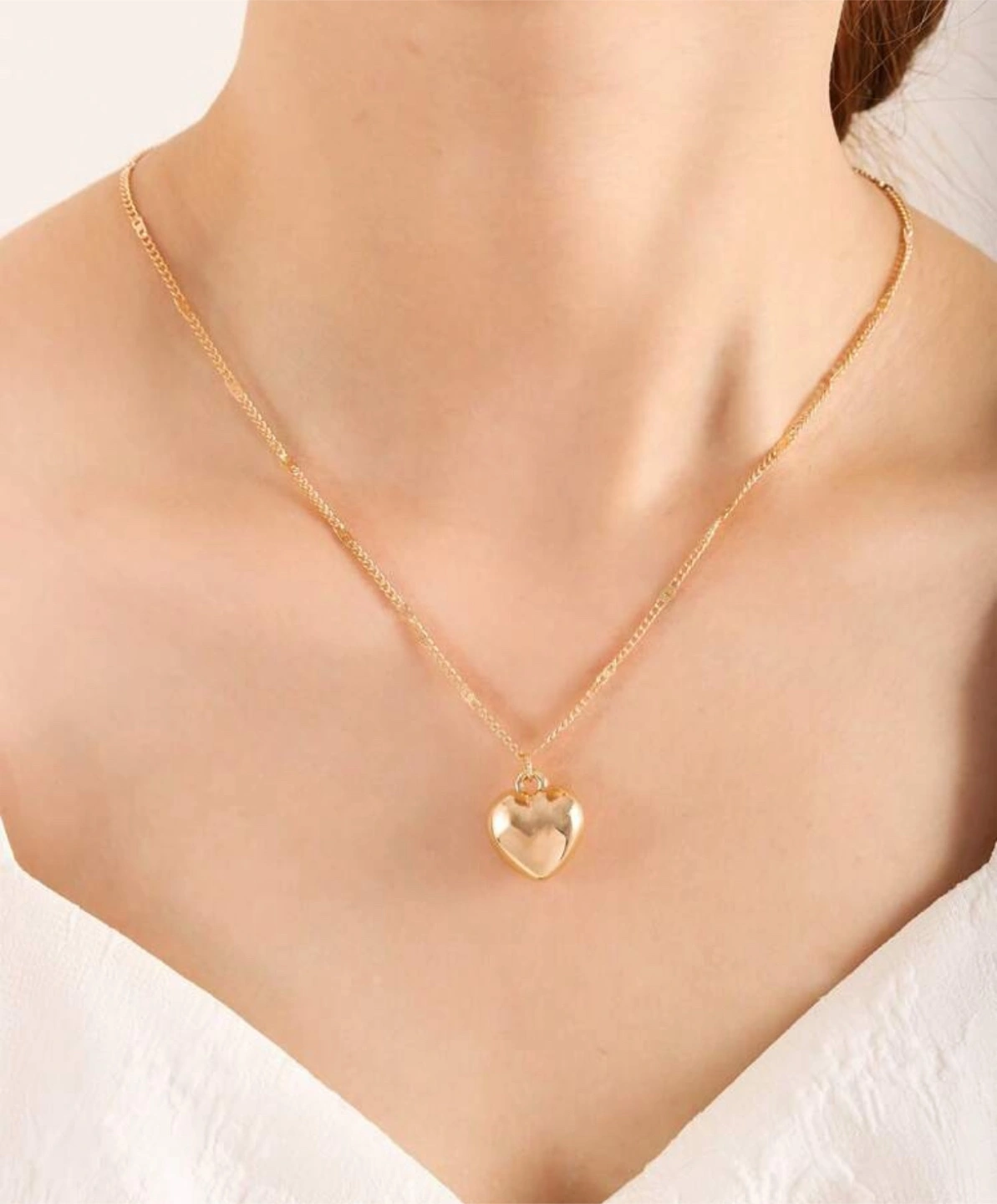 This is a simple and cute gold heart pendant necklace. It's a lovely accessory to add a touch of charm to any outfit. The necklace features a delicate gold chain with a heart-shaped pendant. Perfect for everyday wear or a special occasion!