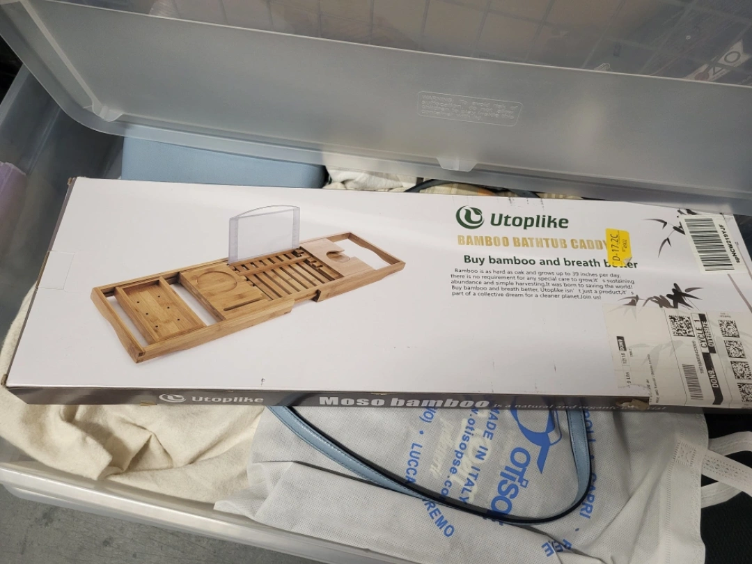 Selling a Utoplike bamboo bathtub caddy! Never been used. It's made of Moso bamboo, which is as hard as oak. It's designed to help you relax and unwind during your bath time.