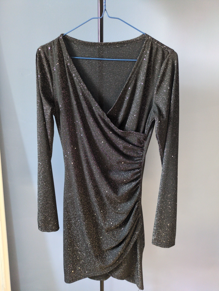 This is a sparkly black long-sleeve dress (size small) It would be great for a night out or special occasion. It's in excellent condition and worn only once. DM me if you have any questions about the dress :)
