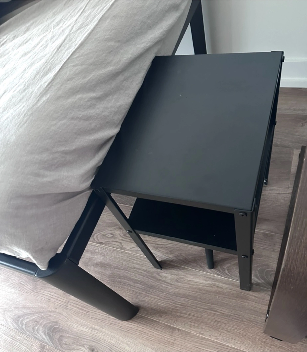 Selling a simple black metal nightstand. It has a clean, minimalist design that would fit well in any bedroom. It's in great shape and ready for a new home!