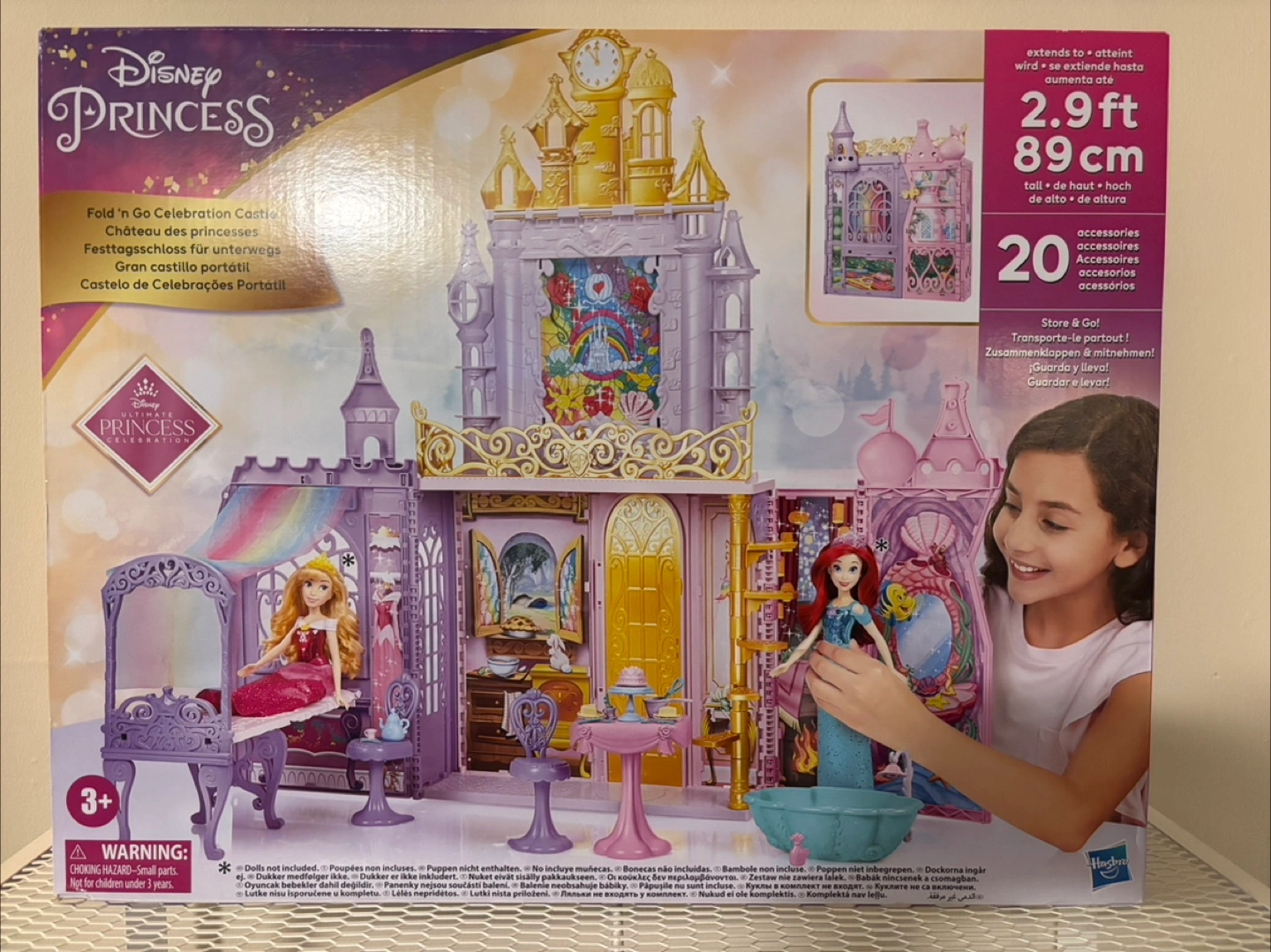 The Disney Princess Fold N Go Celebration Castle is a portable playset designed to bring beloved Disney princesses to life. Featuring a foldable design, it allows easy setup and storage, providing a magical play experience wherever you go. This castle comes equipped with iconic elements such as themed decorations and pieces representing various Disney characters, making it an engaging play scenario for imaginative children. Kids can recreate their favorite movie moments or invent their own imaginative stories, fostering creativity and storytelling skills.