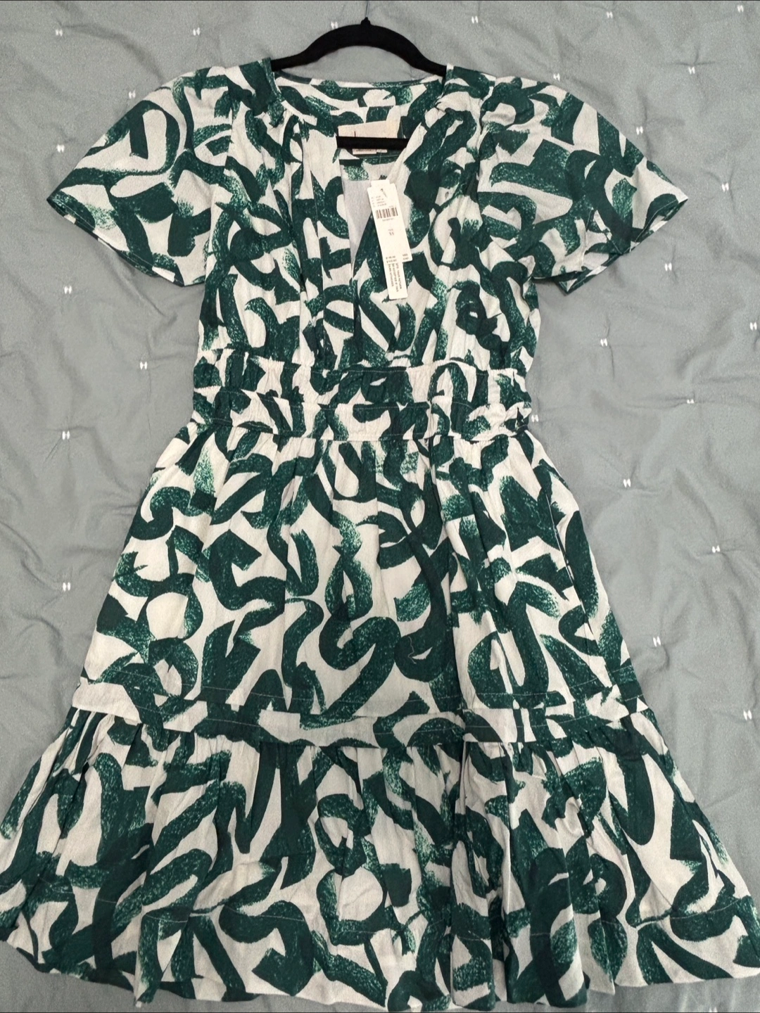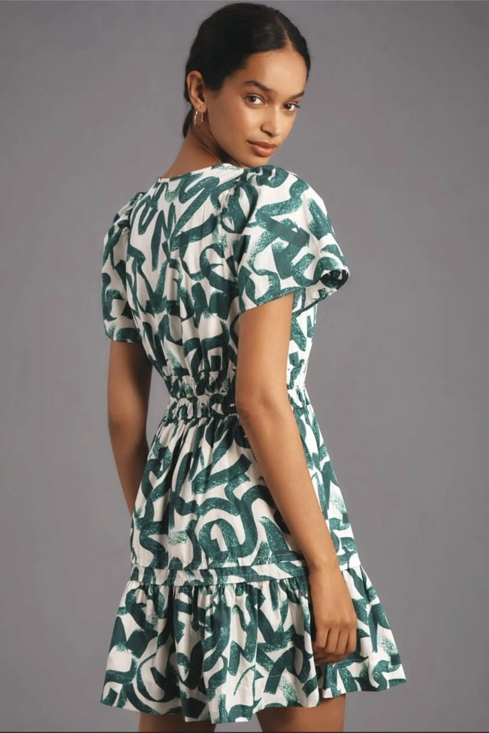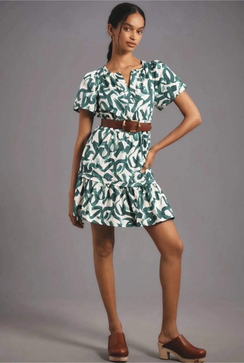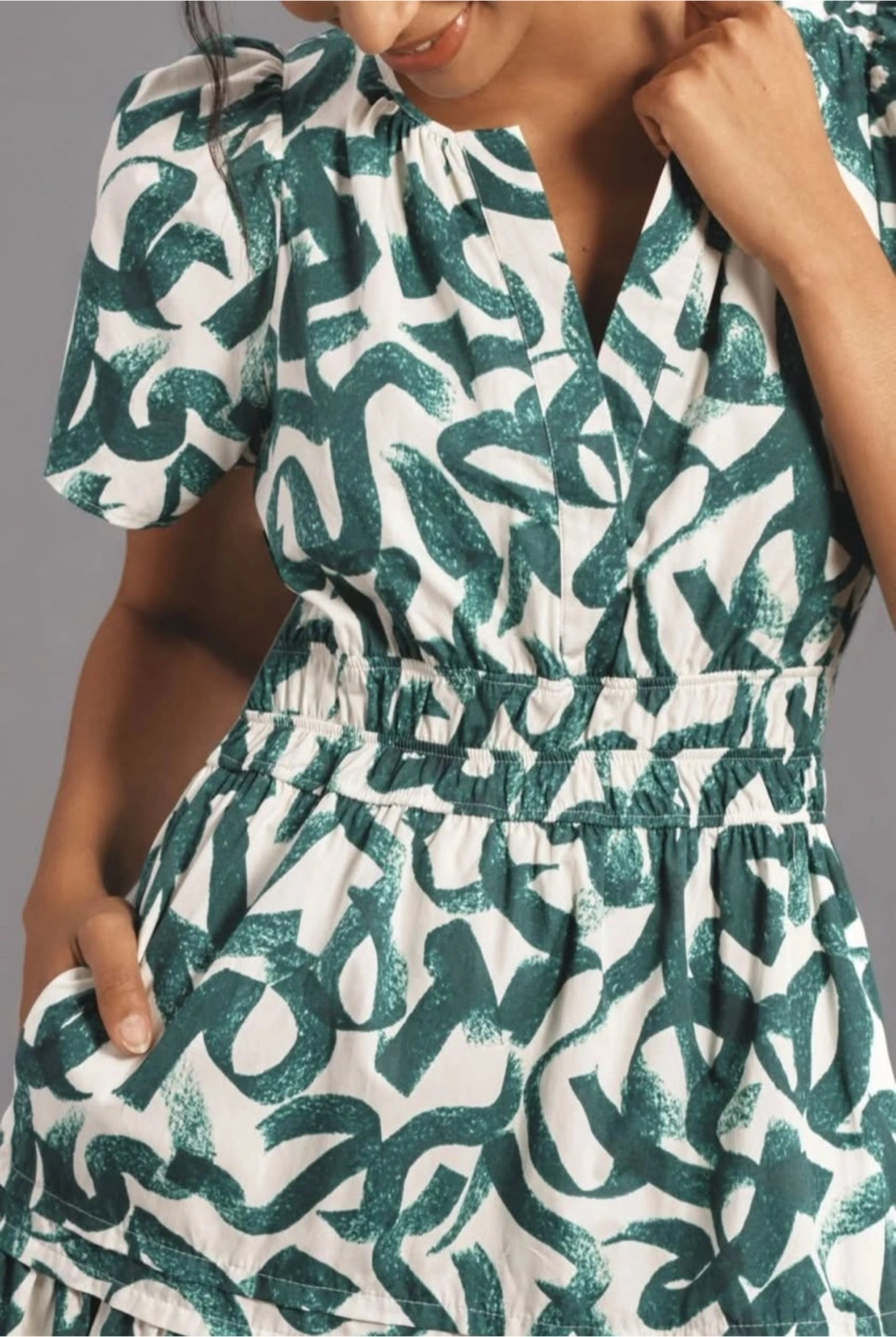 Anthropologie Green Print Mini Dress - Size XS π¨π¦
