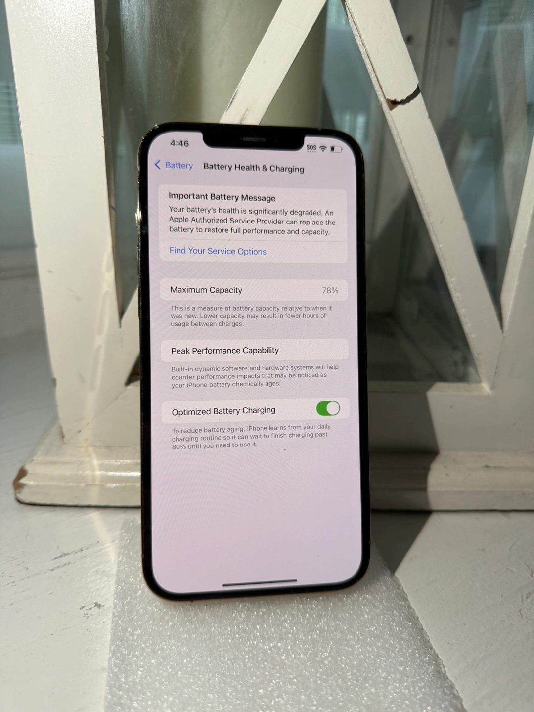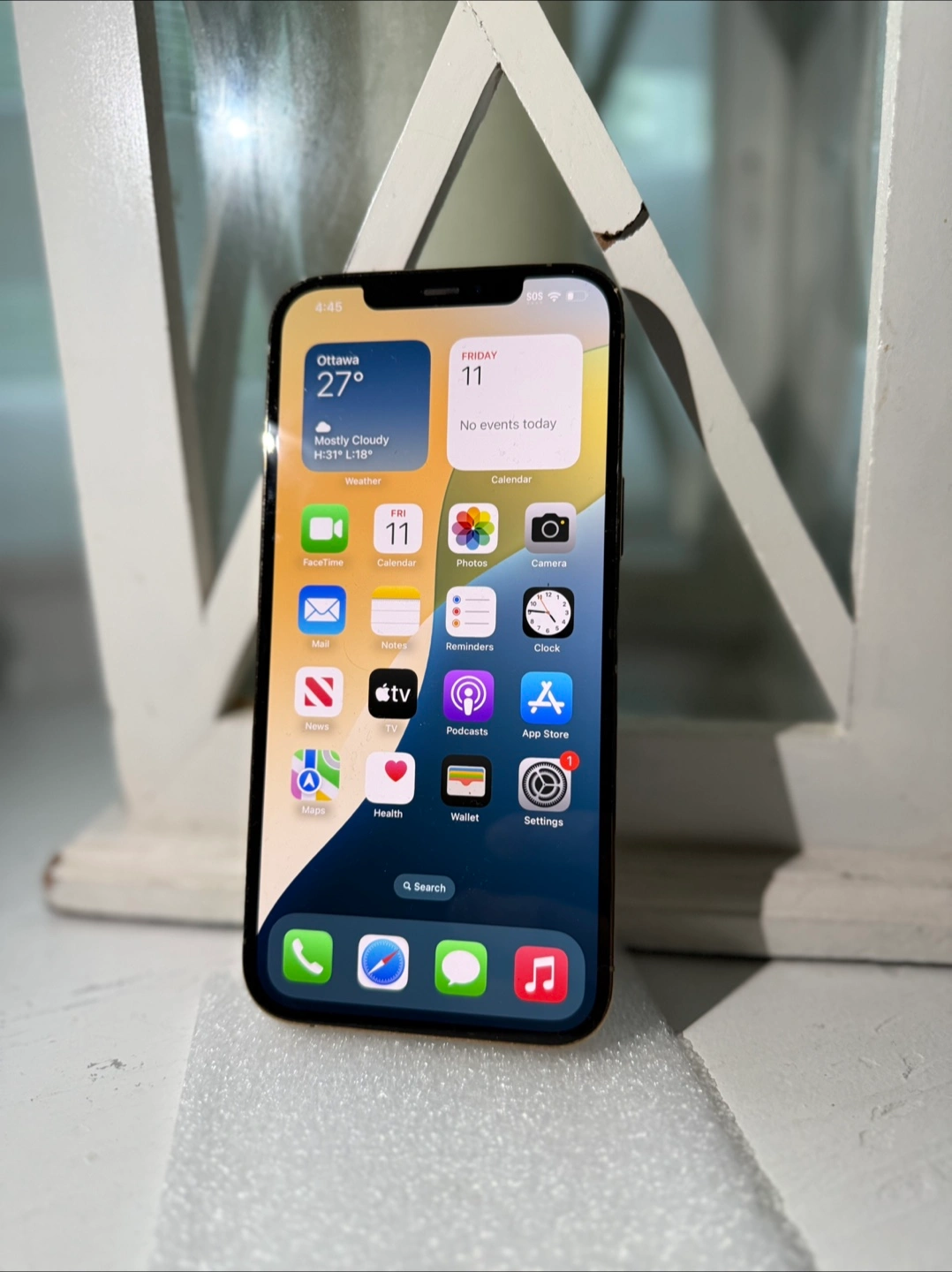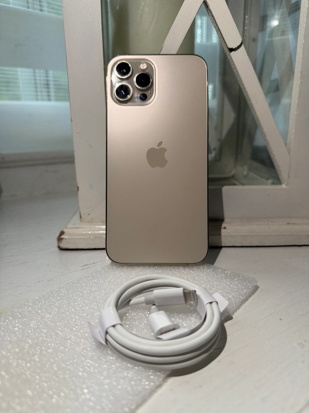 iPhone 12 Pro Max, 256 GB, Gold - 9.5/10 iPhone was used by me and bought originally from apple Only 1 owner Screen protector never removed from phone Battery life is 78% that still gets me through a full day Overall the case and screen are near mint very little to no actual scractes on surface scratches due to normal wear π $450 Pickup in westmount area in London