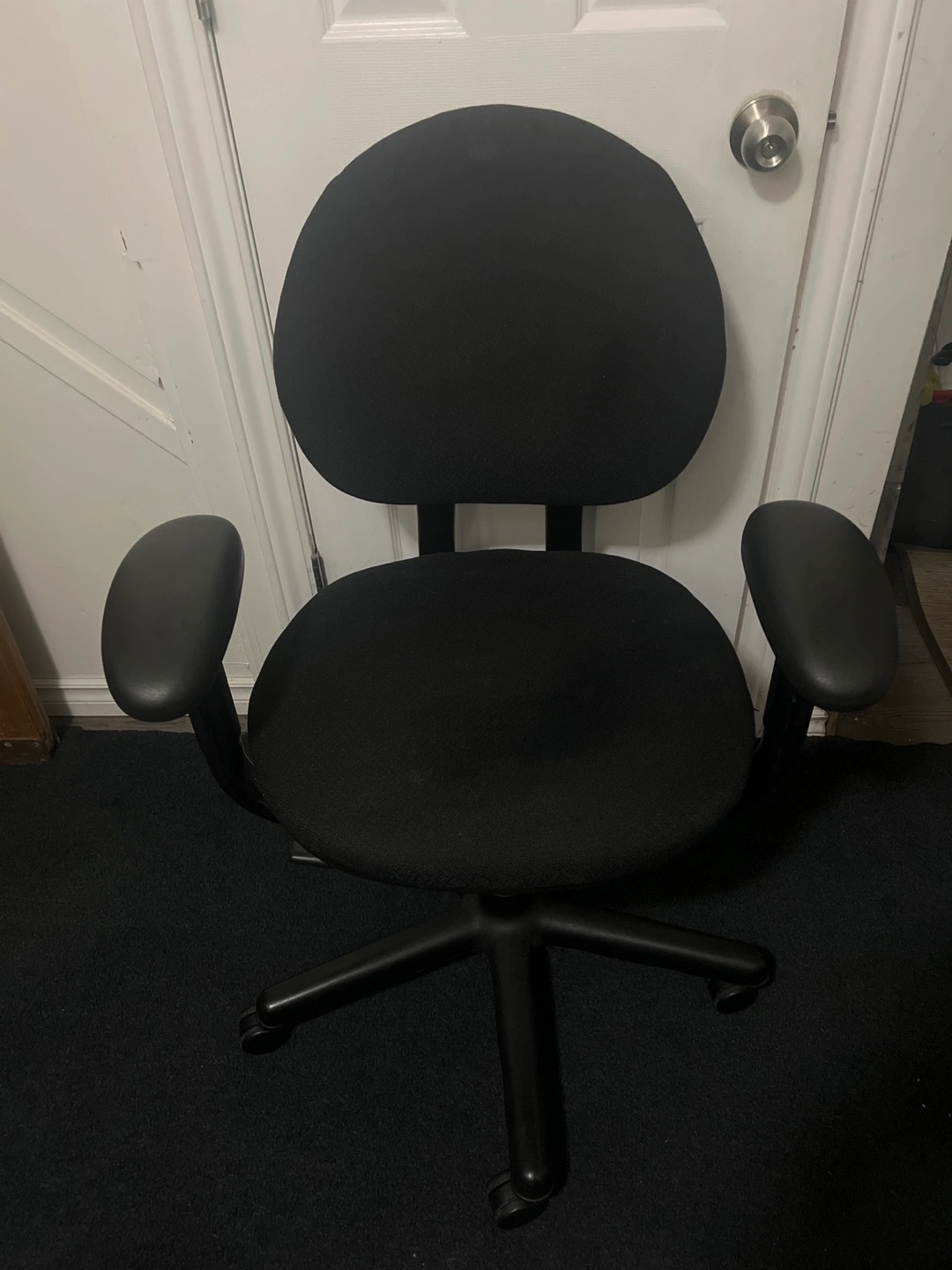 628Free black office chair. It's in good condition—no rips or stains. It is missing a wheel but I didn’t find it tippy. I finally got a new one and hoping someone will give this almost perfectly good chair a new lease on life. Maybe you have a chair wheel looking for a chair. Pick up Queen and Leslie.