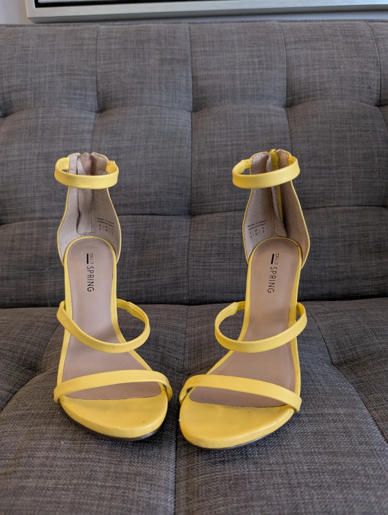Cute yellow heels from Call It Spring in siize 6. Perfect for adding a pop of colour to any outfit.