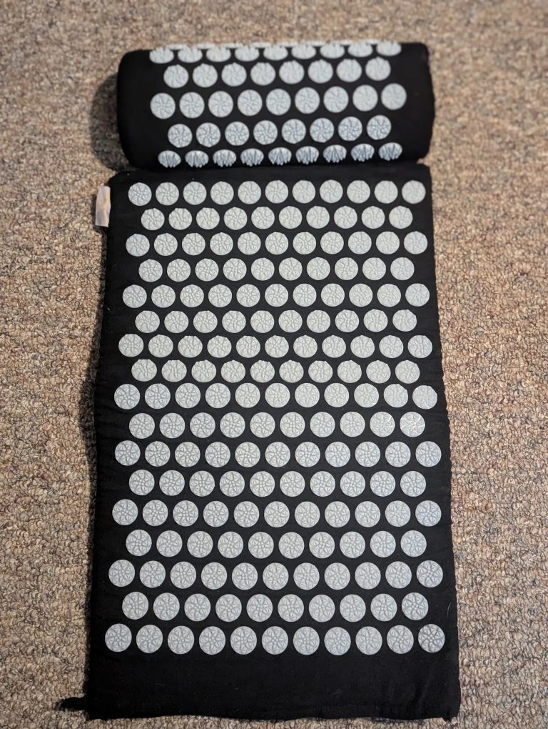 Acupressure mat and pillow set. It's in great shape and ready to help you relax and relieve some tension! Perfect for at-home use