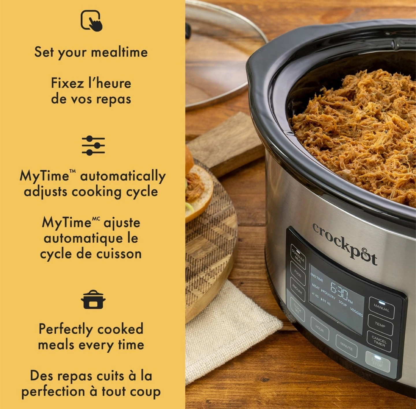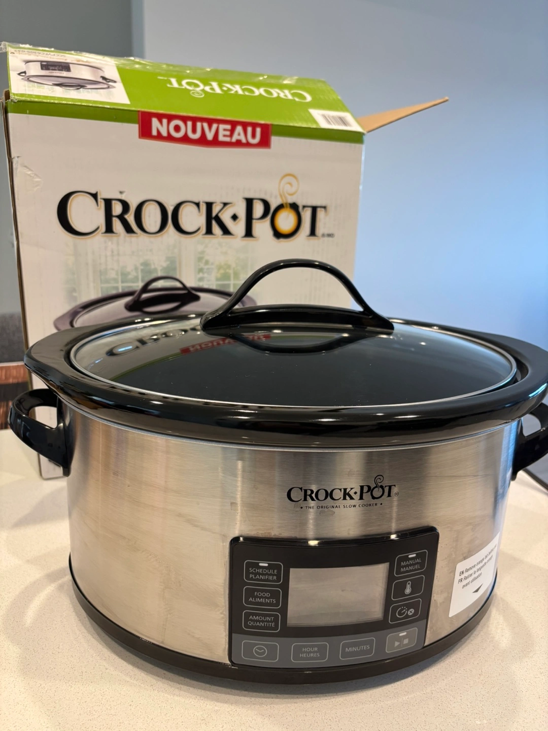 Selling a Crock-Pot slow cooker! It's in great shape and comes with the box. The stoneware and lid are dishwasher-safe, making cleanup a breeze. You can set your mealtime, and the MyTime feature automatically adjusts the cooking cycle for perfectly cooked meals every time!