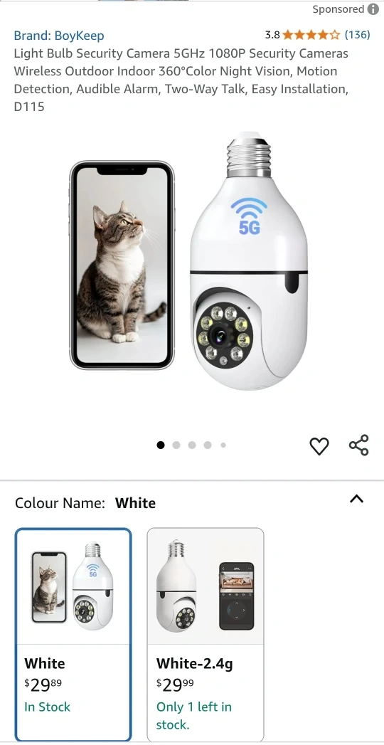 BoyKeep D115 1080HD 360° Bulb Camera with WiFi & Night Vision BoyKeep 1080HD Wireless Security Camera 5G/2.4GHz WiFi Bulb Cameras for Home Security 360° PTZ Security Cameras Outdoor Indoor Full Color Day and Night, Motion Detection Selling a NEW BoyKeep light bulb security camera in white! It's a wireless outdoor indoor 360° colour night vision camera. It also has motion detection and an audible alarm. Easy to install and has two-way talk. Comes with the box, E27, and pack of screws Features summary for BoyKeep D115: ✅ 1080 HD (3MP) – sharp, clear video ✅ Dual-Band WiFi – 2.4GHz & 5GHz ✅ 360° PTZ View – pan & tilt coverage ✅ Color Night Vision – full-color in the dark ✅ Motion Detection Alerts – real-time notifications ✅ Two-Way Audio – talk & listen via app ✅ E27 Bulb Socket – easy installation ✅ Indoor/Outdoor Use – weather-resistant ✅ Storage Options – microSD (up to 128GB) & cloud ✅ Multi-User Sharing – app access for family Brand new in box Price : $20 Payment : Cash only Location : T2W 5C8 Cedarbrae SW