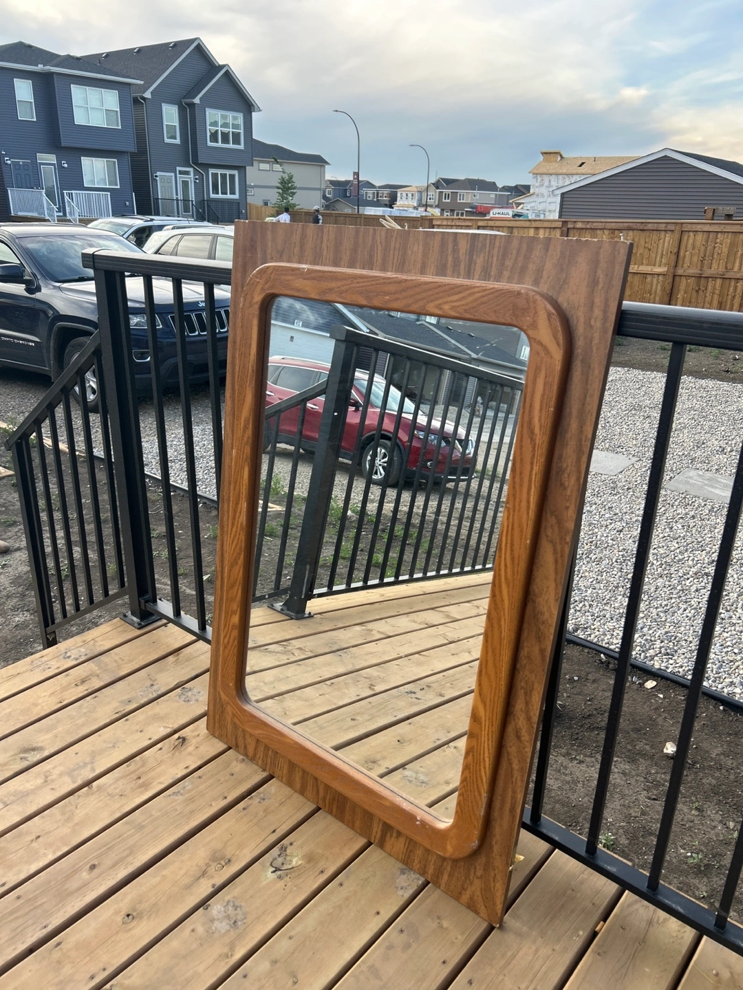 Selling a wood-framed mirror. It's in good condition and would look great in any room