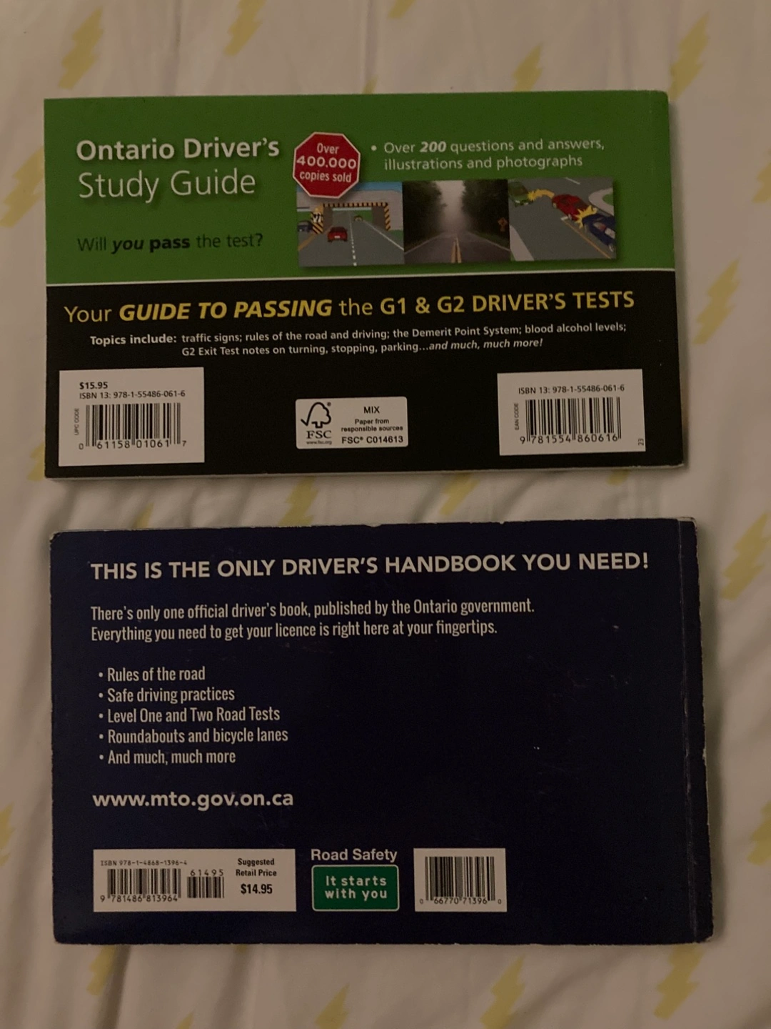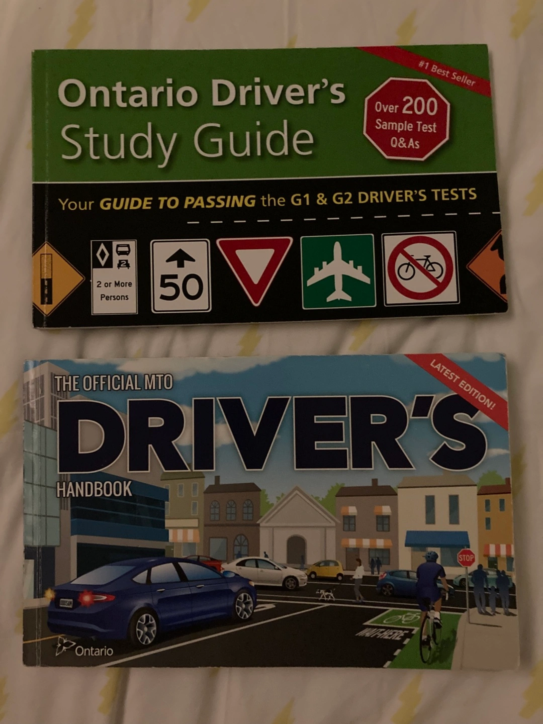 Selling the Ontario Driver's Study Guide and the Official MTO Driver's Handbook. Perfect for anyone preparing for their G1 and G2 driver's tests! Includes rules of the road, safe driving practices, and everything you need to get your licence.