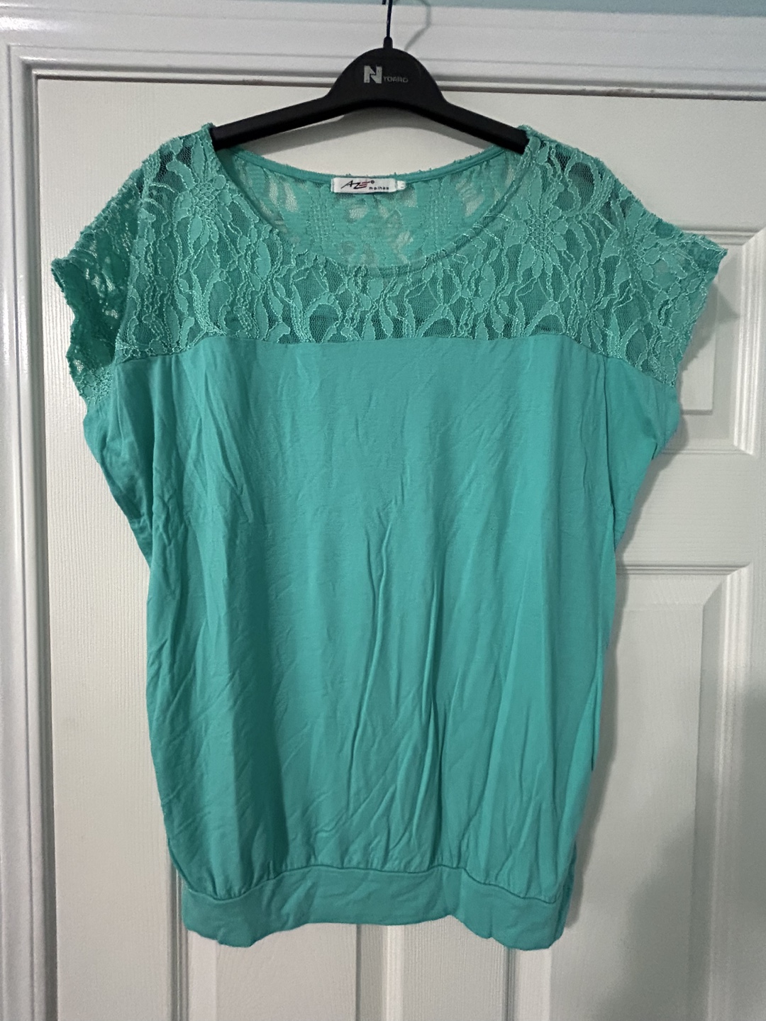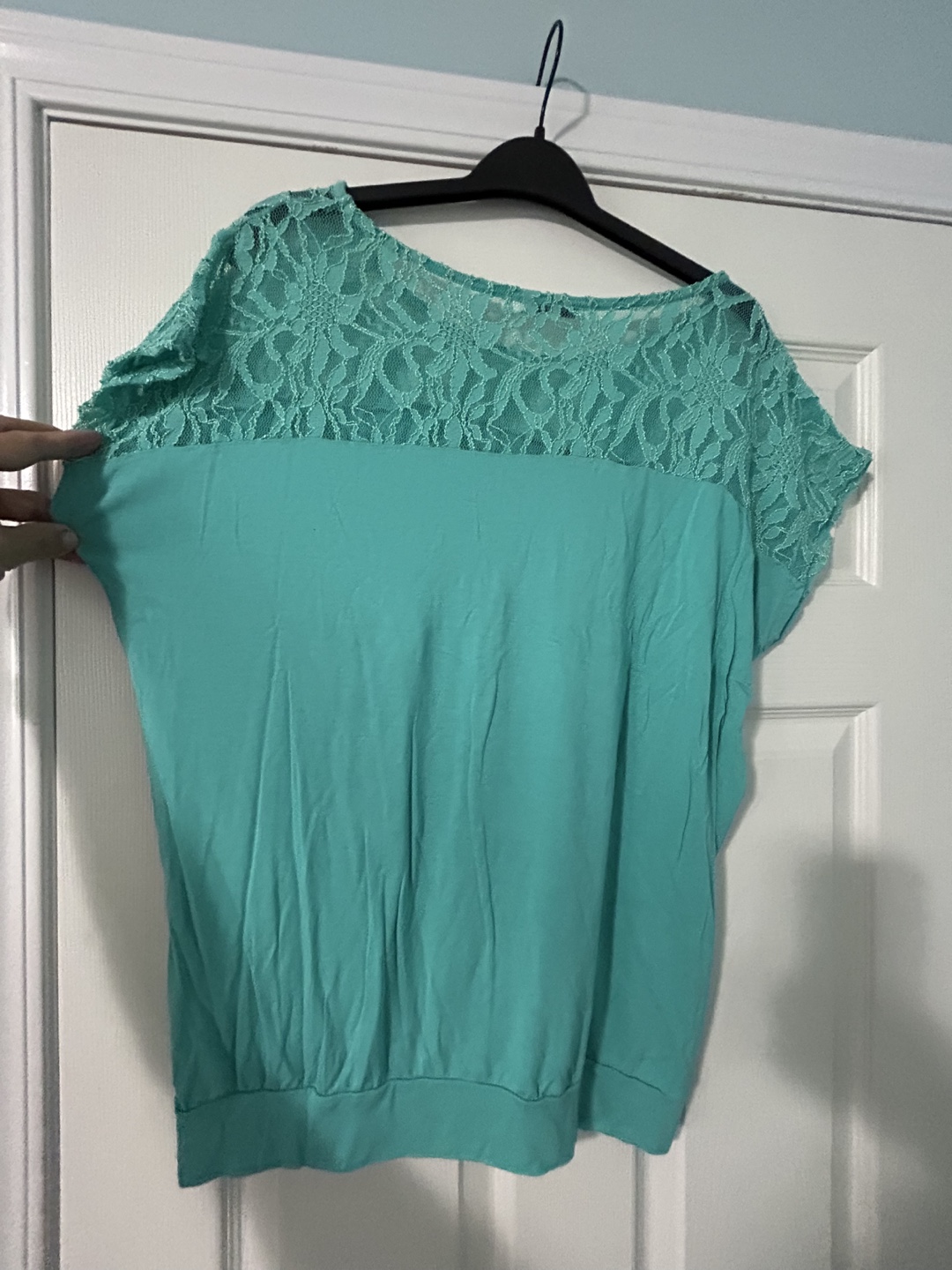 Beautiful top with lace detailing, perfect for a casual outing or dressing up! Size is Large/XL