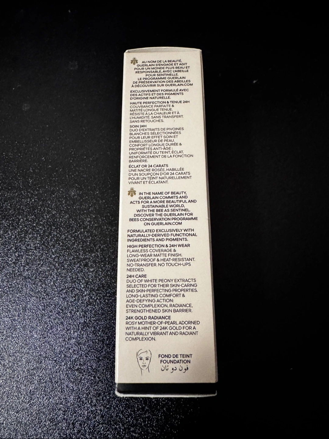 It's a foundation with high perfection and 24-hour care and wear, infused with 24K gold and white peony extracts. The shade is 1C Cool/Rosé.